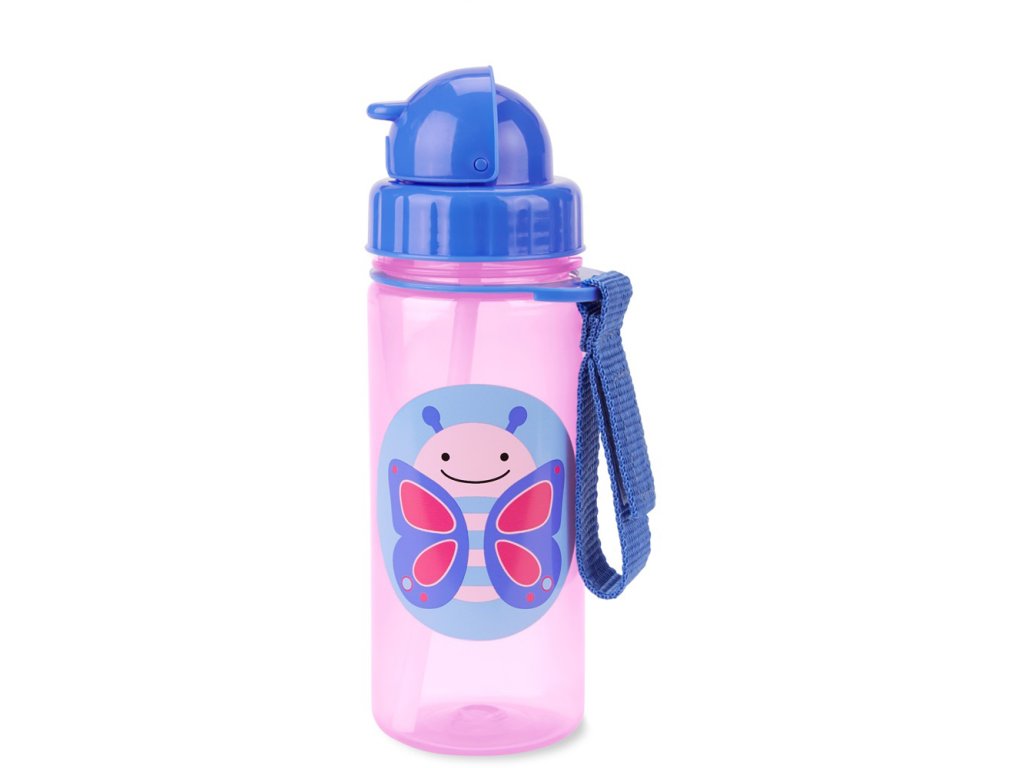 Krásná a praktická lahvička z kolekce ZOO, s brčkem, zavíracím víčkem, praktickým páskem na suchý zip.