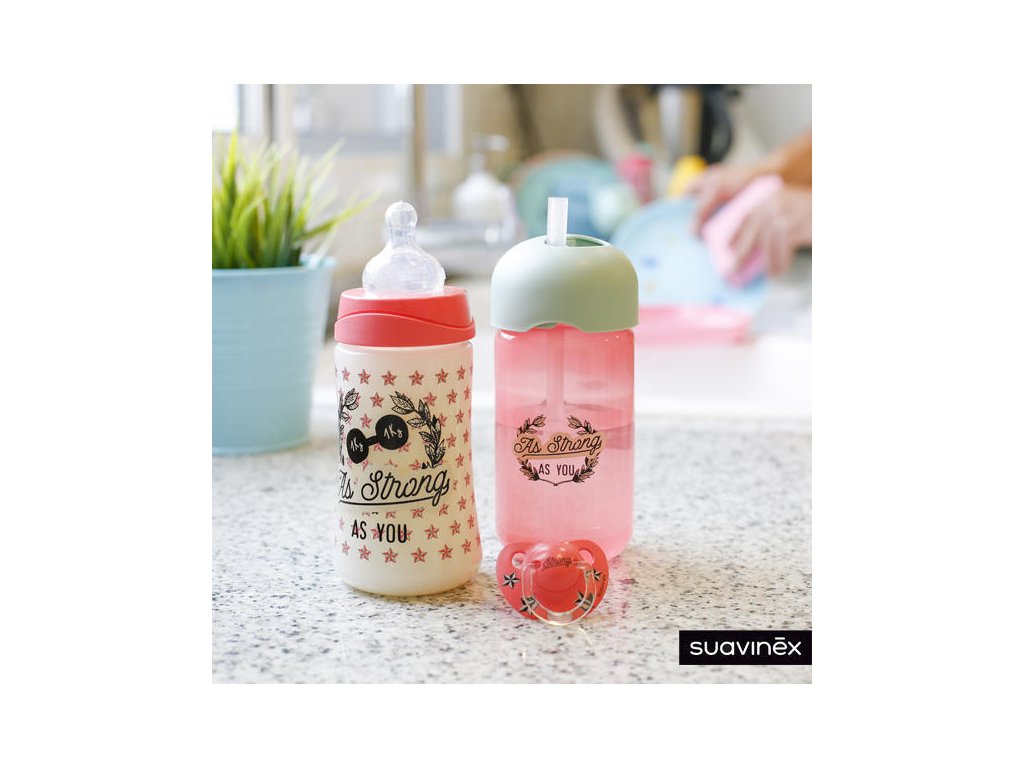 SUAVINEX | AS YOU SET Lahví - RŮŽOVÝ Nádherná sada dvou lahví pro rodiče i dítě řady As You je skvělá pro společně strávené chvíle a sdílenou radost na vycházkách.