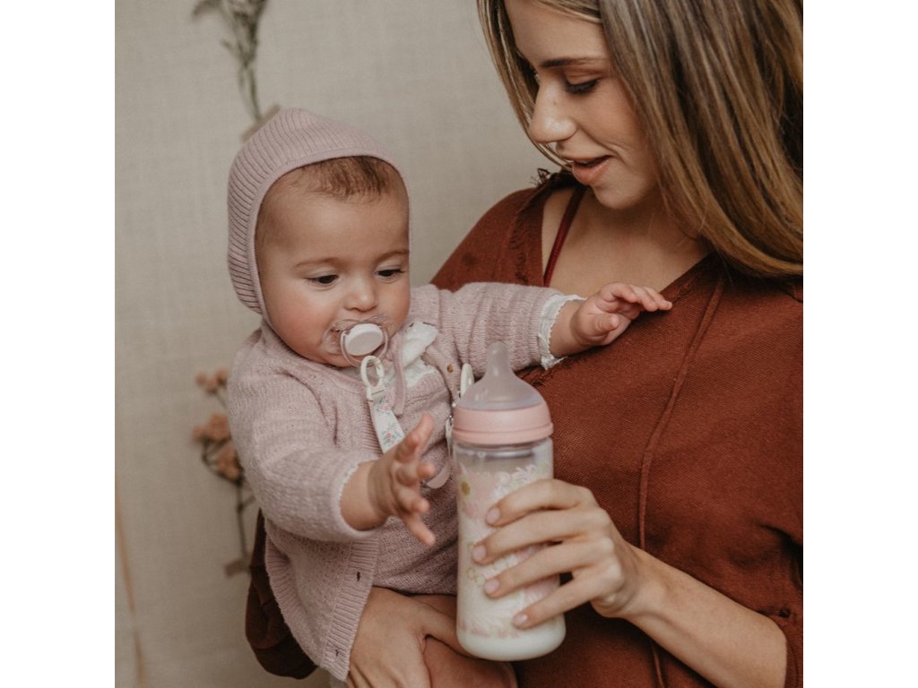 Vyrobena z jemného, ultra-měkkého silikonu s povrchem, který napodobuje mateřskou bradavku. Je velmi pružná a přirozeně se přizpůsobí patru miminka.