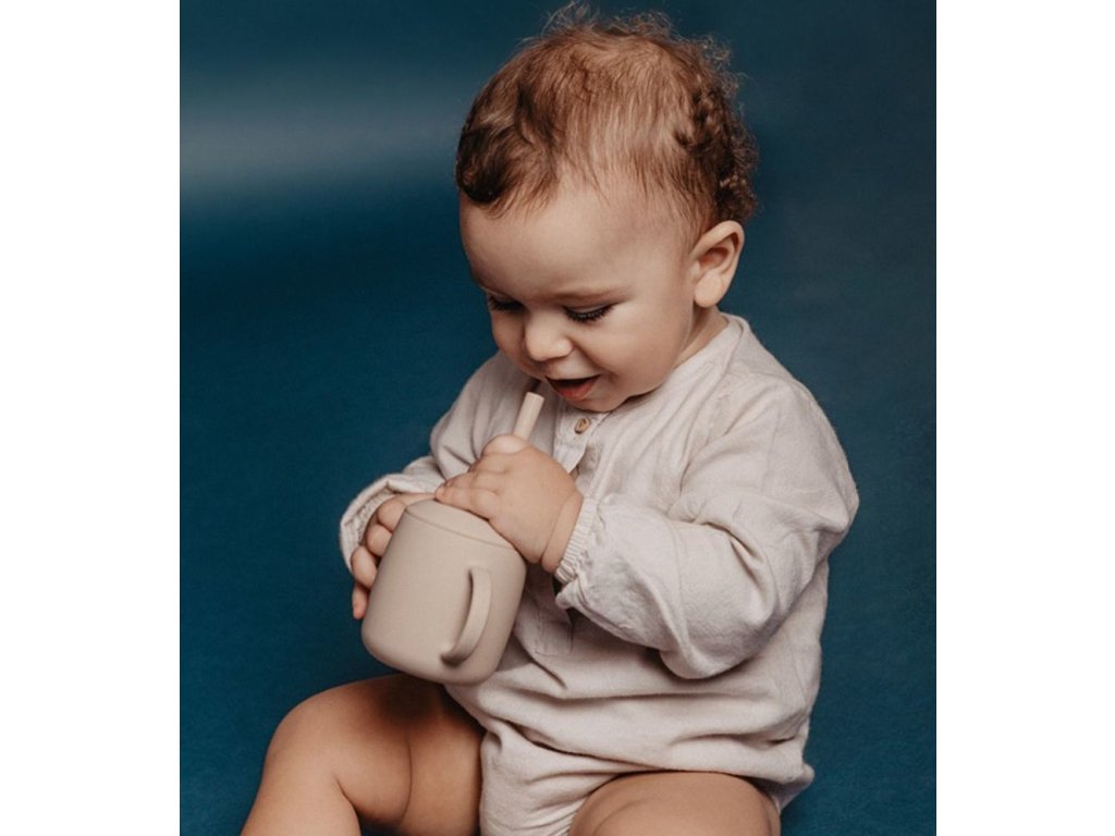 - Silikonový hrneček s dvěma oušky, ideální pro dětské ručičky.