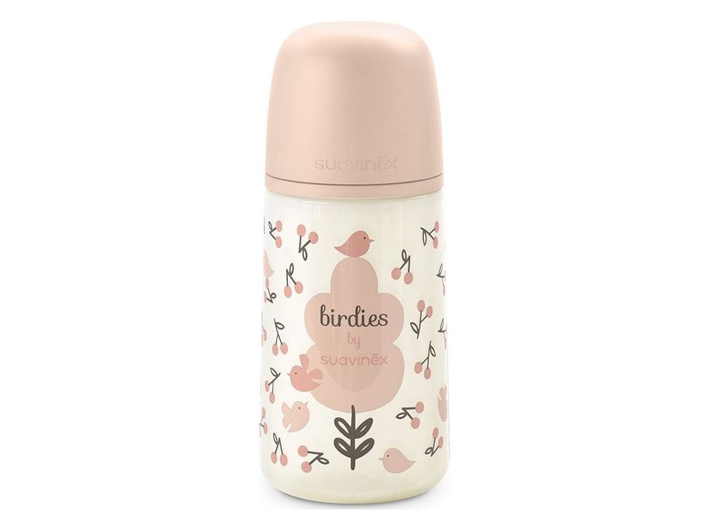SUAVINEX | Kojenecká láhev 270 ml M BIRDIES - růžová