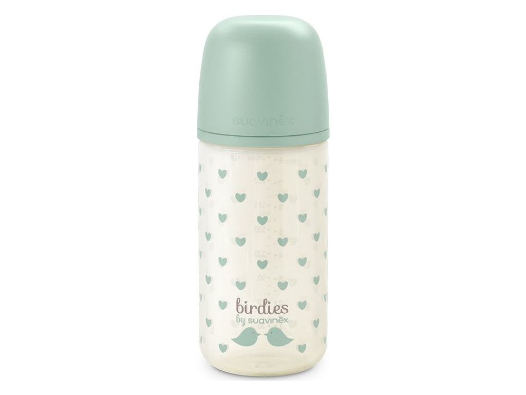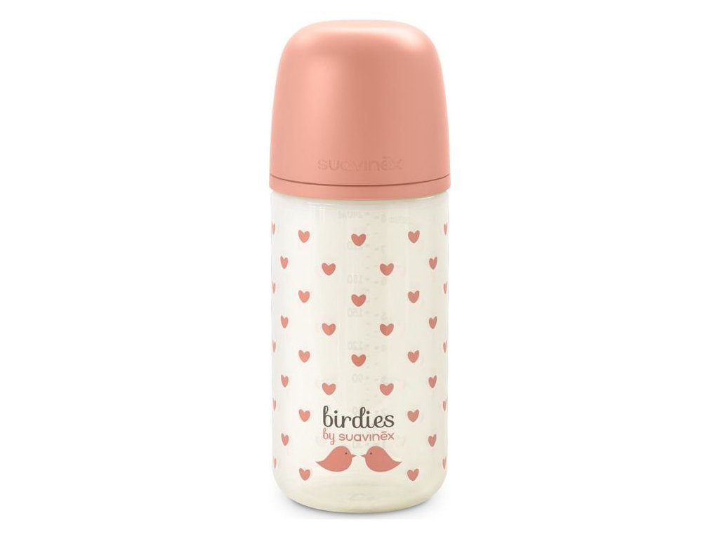 SUAVINEX | Láhev sklo BIRDIES 240 ml fyziologická SX PRO +0 SF - růžová