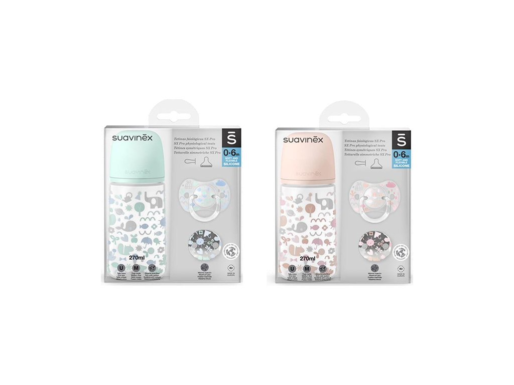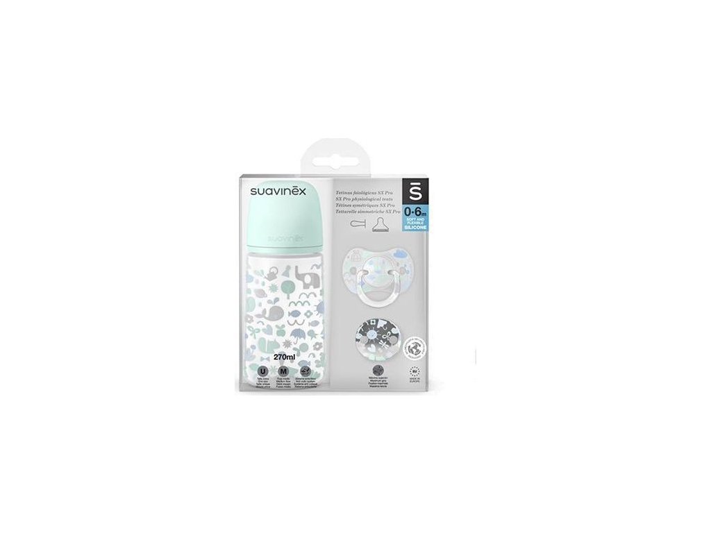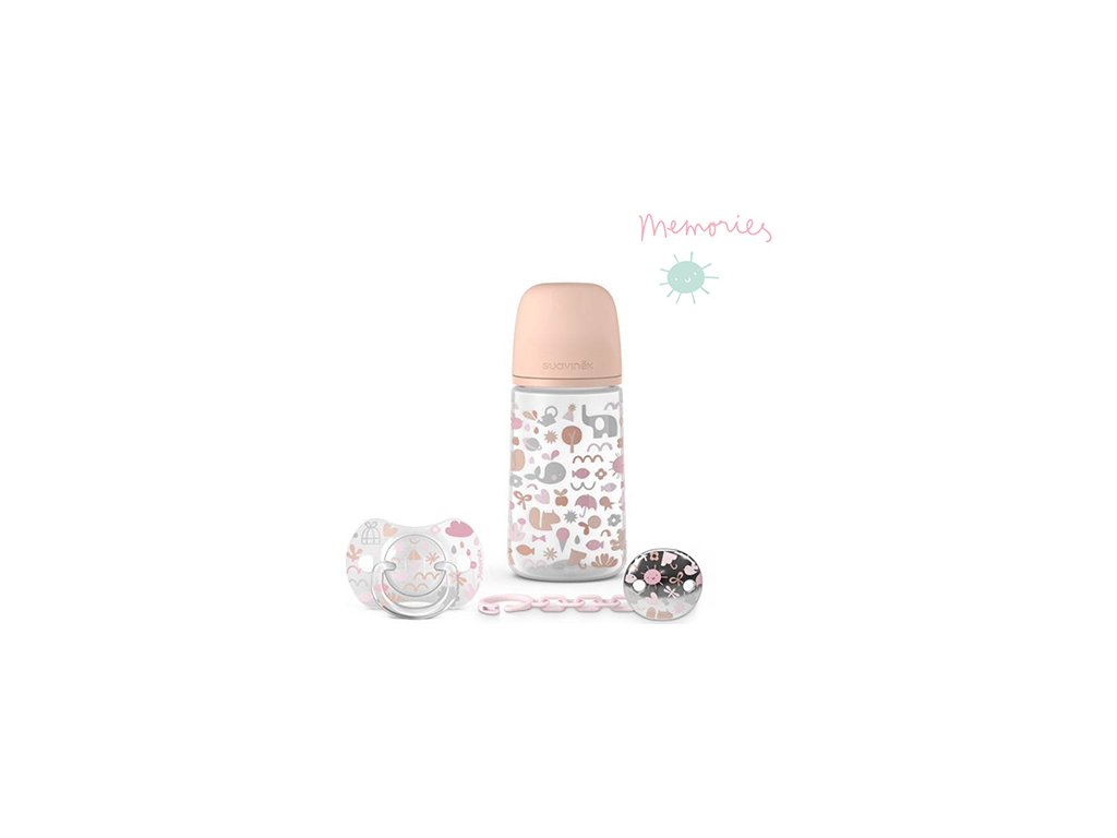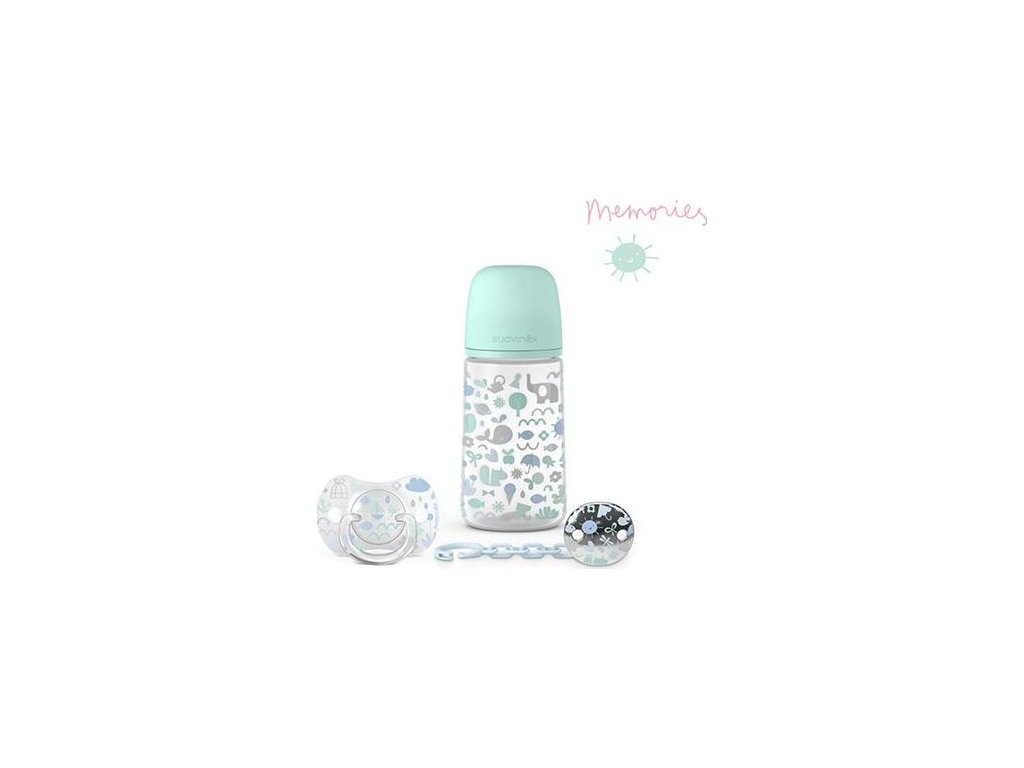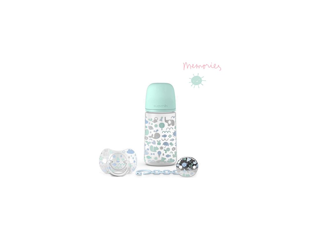 SUAVINEX SADA 270ml + DUDLÍK FYZIOLOGICKÝ 0/6M + KLIP MEMORIES - MODRÝ