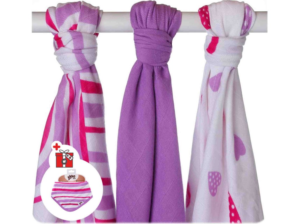 Bambusové pleny XKKO BMB Hearts&Waves Lilac MIX 70x70cm - 3ks