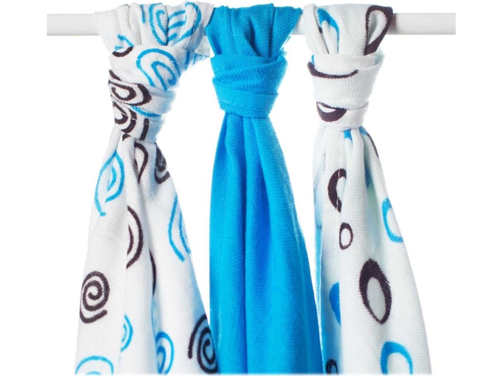 Bambusové pleny XKKO BMB Spirals&Bubbles Cyan MIX 70x70cm - 3ks