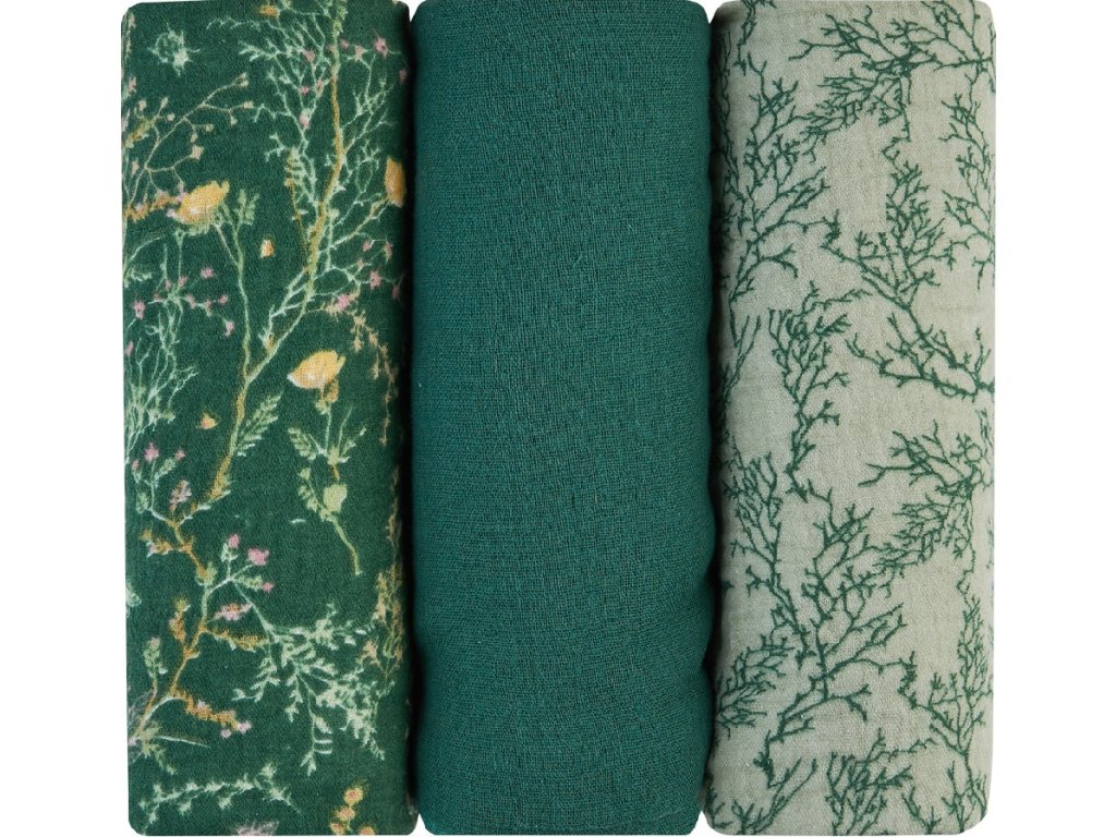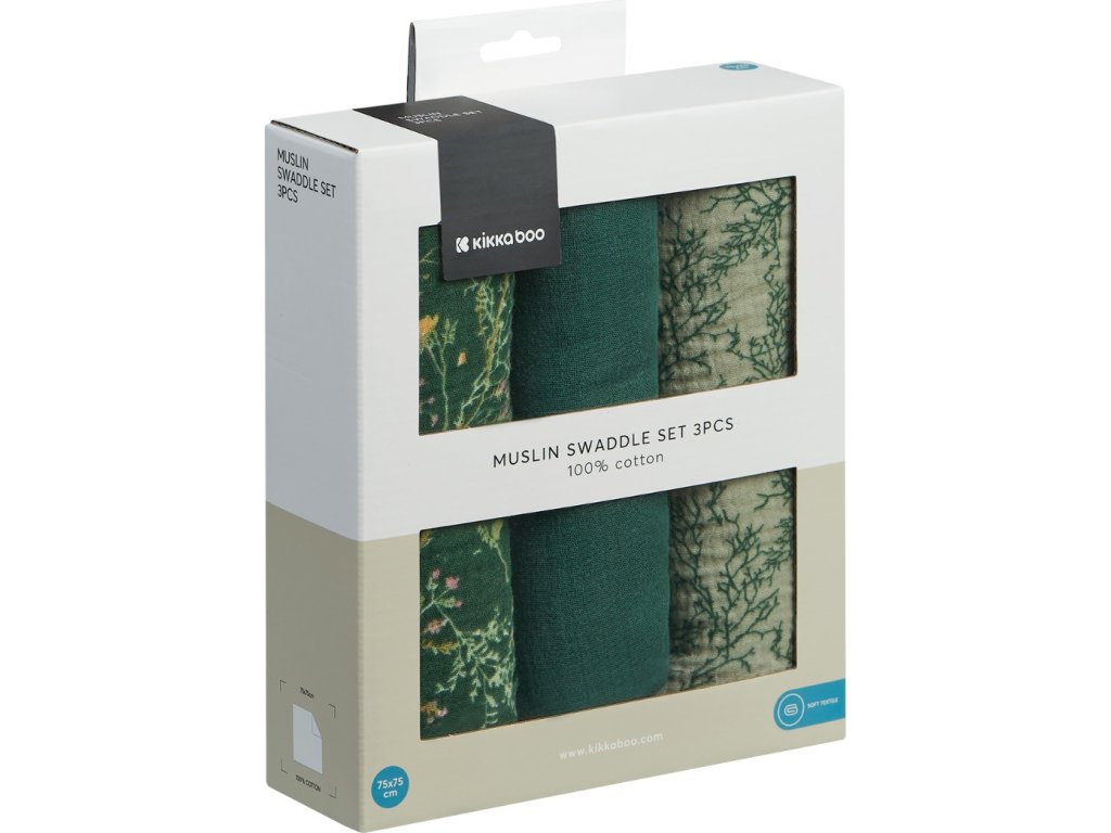 KikkaBoo Pleny mušelínové 75x75 cm 3ks Secret Garden Green