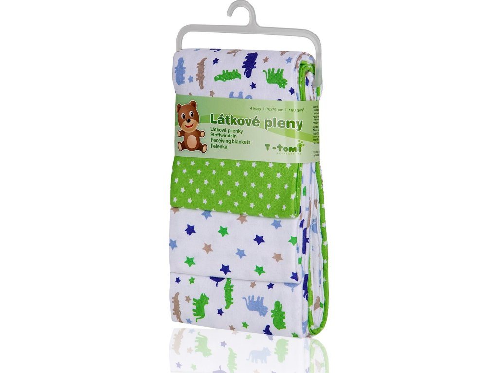 Kvalitní látkové pleny T-tomi s moderním barevným potiskem vyrobené z vysokogramážní bavlny spojené s jemným flanelem jsou určeny nejen jako klasické dětské pleny, ale i jako podkladové pleny do kočárků a postýlek, na přebalovací podložku a jiné všestranné využití. Velkou výhodou je jejich využití i jako dětská osuška na cestách a výletech. Použitý materiál je velmi příjemný k dětské pokožce, měkký, savý a nejen děti ocení moderní a zajímavý potisk těchto plen.