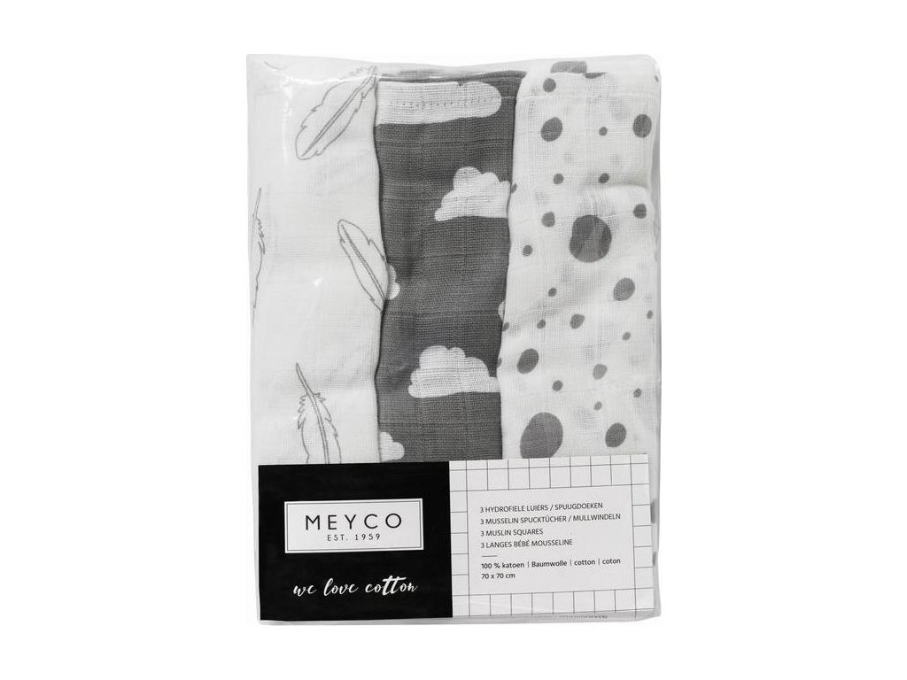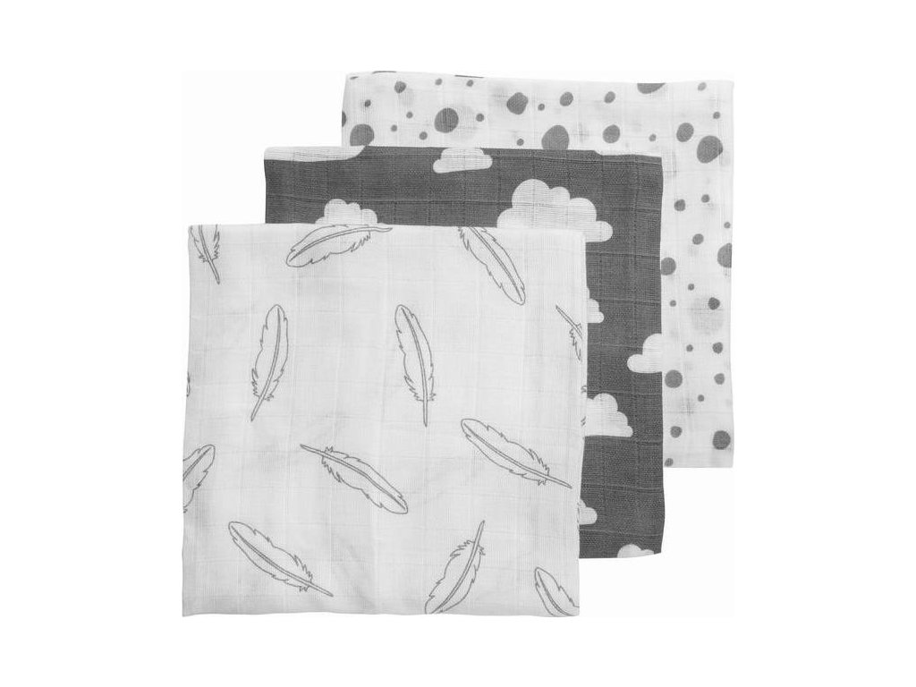 Plenky 3-balení Feathers-clouds-dots grey/white