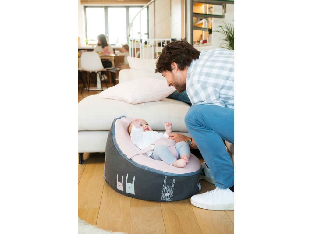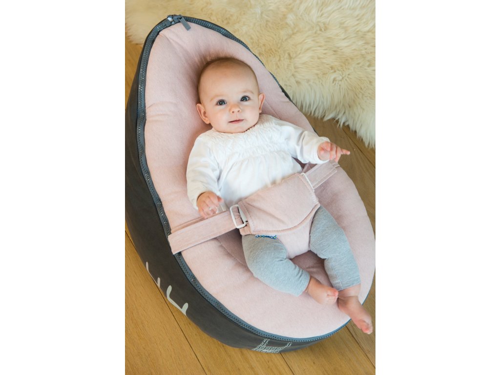 DOOMOO seat je adaptovatelné a multifunkční sedádko fazolového tvaru, které garantuje naprostý komfort malinkým miminkům od narození, díky jeho bezpečnostním pásem, ale také větším dětem až do 30 kg. Pomocí jeho 2 vrchních vrstev, které mohou být odděleny a zaměněny, je DOOMOO sedátko přizpůsobitelné věku a rozvoji dítěte.