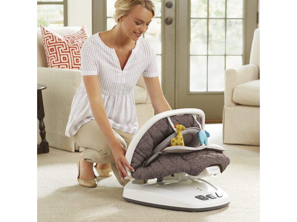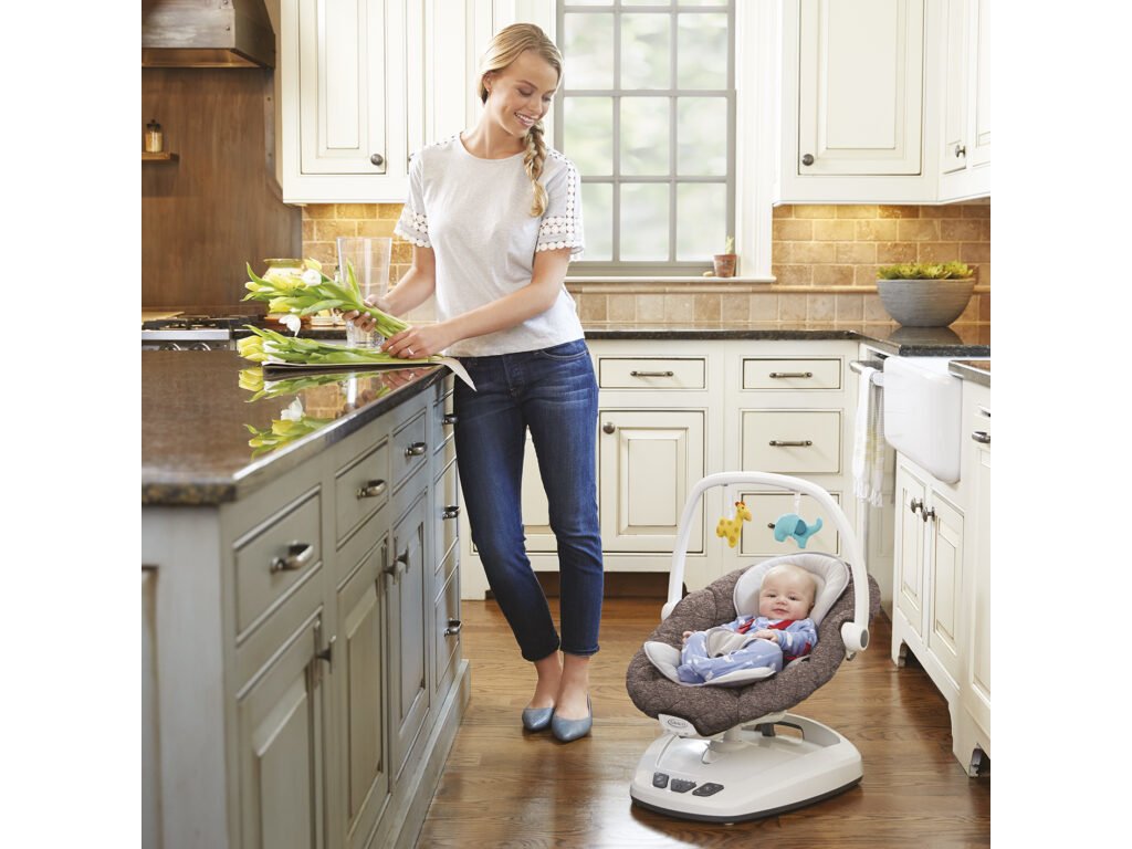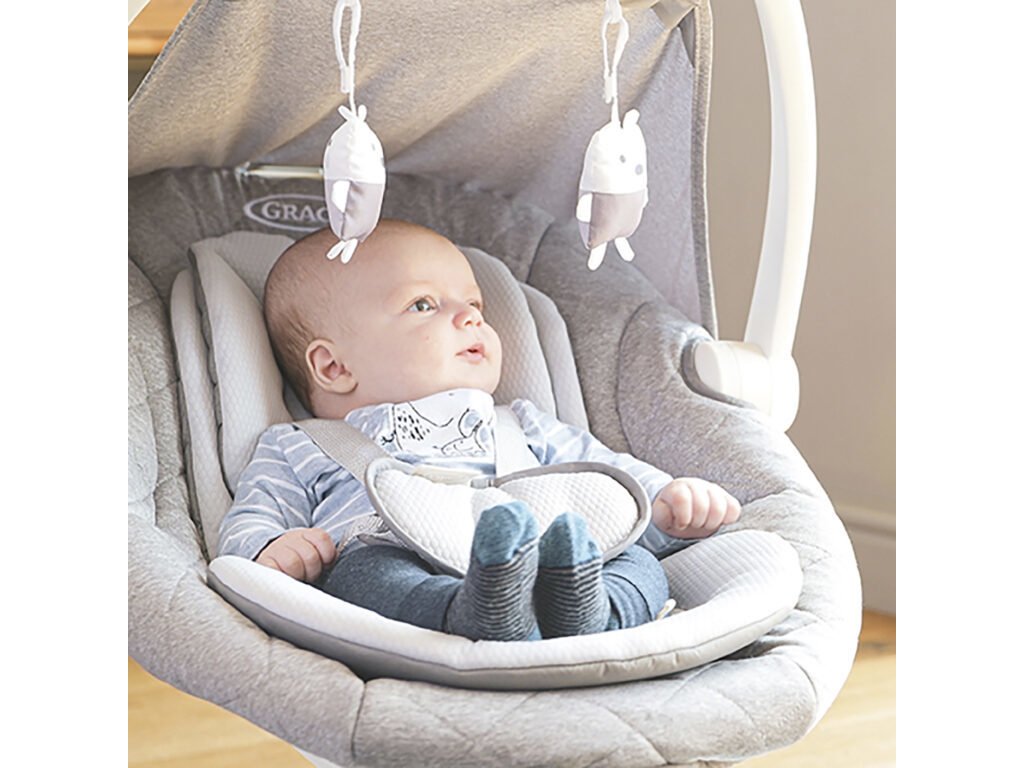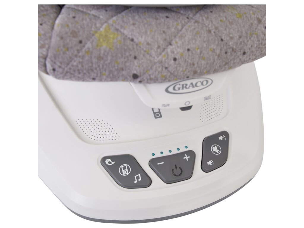 Americká globální značka Graco působí na trhu již více než 60 let. Za tuto dobu se stala jednou z nejznámějších značek dětského zboží na světě. Jedná se o nejprodávanější značku dětských výrobků v USA i celosvětově. Jejím cílem je zajistit kvalitní, bezpečné a promyšlené výrobky za dostupné ceny. Klade důraz na jednoduchou obsluhu a tím i usnadnění každodenního života rodičů a dětí. Move With Me Plně vybavené houpátko, které snadno složíte a přenesete kamkoliv je potřeba klíčové vlastnosti: •houpátko pro děti od narození do váhy 9kg •kompaktní po složení •rychlé a jednoduché skládání ve 2 krocích •úchyt pro přenášení složeného houpátka •2 pozice sklonu opěrky zad •vibrace nastavitelné ve úrovních 2 intenzity •možností nastavení jedné z 5 rychlostí houpání ze strany na stranu •možnost přehrávání MP3 •10 druhů hudby •5 druhů zvuků •ovládání hlasitosti přehrávaných zvuků •možnost napájení ze zásuvky, nebo pomocí 4 ks baterií (dokupují se samostatně) •kvalitní materiály •vyjímatelná vnitřní vložka •hrazda s hračkami