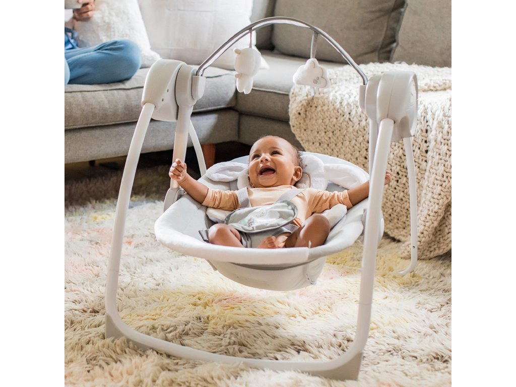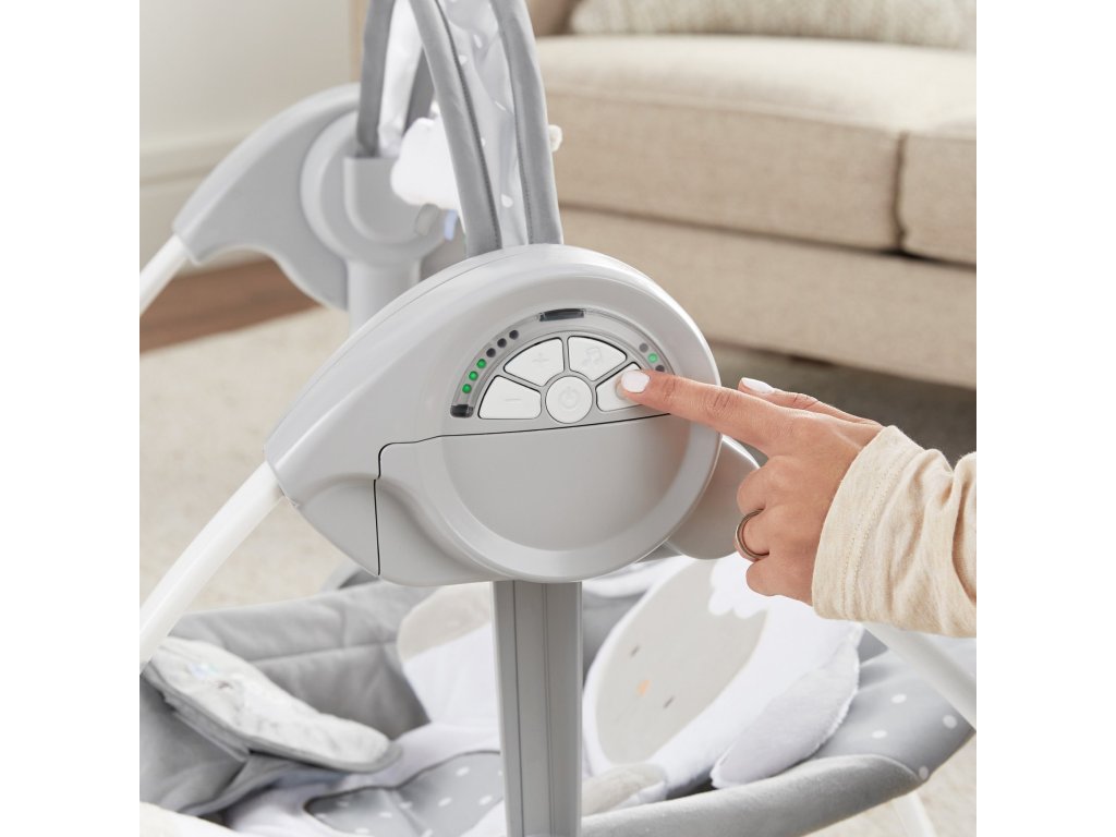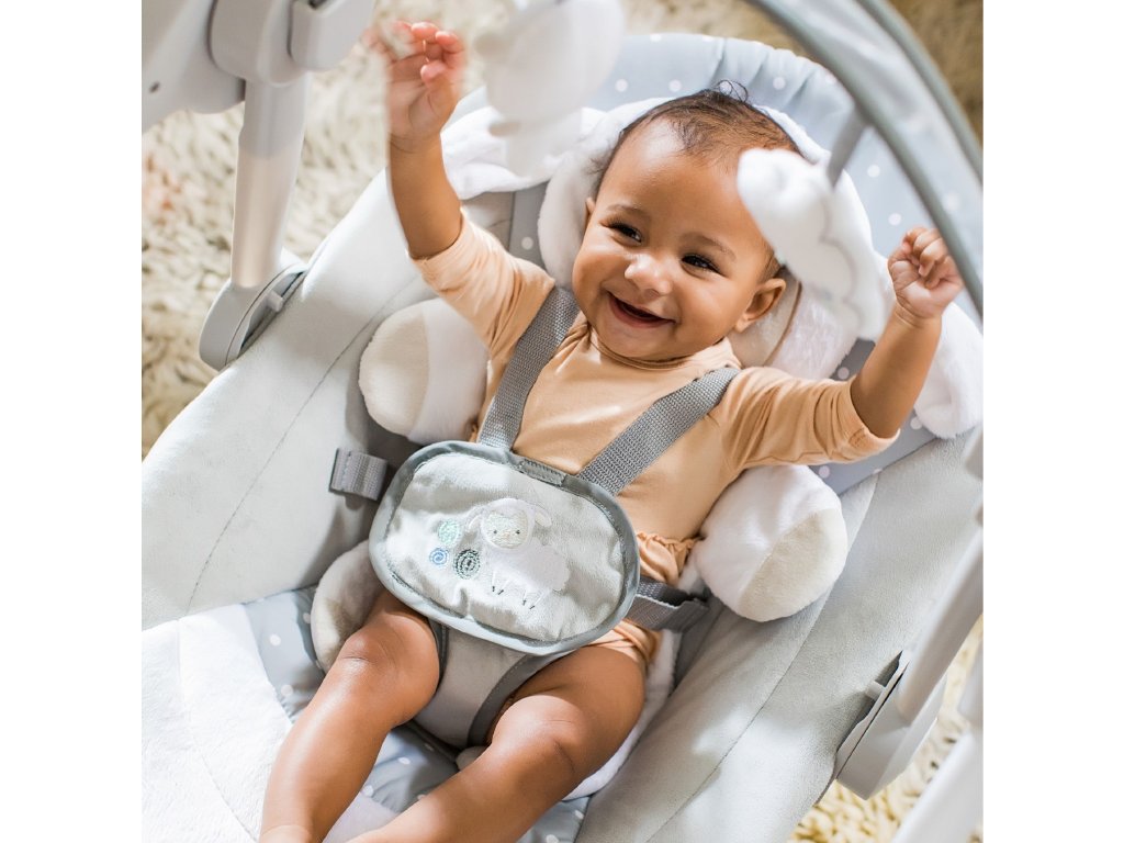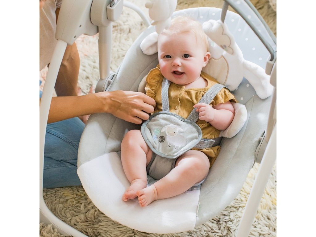 Navrženy s ohledem na rodičovství. Maximální pohodlí kdykoliv a kdekoliv s houpačkou Cuddle Lamb značky Ingenuity. Super kompaktní houpačka, která v sobě zachovává všechny nejdůležitější funkce velké houpačky. Tato lehká houpačka je vybavena množstvím funkcí včetně polohování sedáku do 2 poloh, hrazdičkou s 2 plyšovými hračkami, která se dá jednoduše odstranit pro snadný přístup k dítěti a technologií, která umocňuje uklidňující zážitek děťátka. Získejte pro sebe několik volných okamžiků díky časovači, který lze nastavit na 30, 45 nebo 60 minut. Uklidněte děťátko 12 melodiemi, z nichž všechny mají možnost nastavení hlasitosti. Houpačka je zabalena do dokonalých jemně ladících textilií. A i když se vám přihodí nějaká malá nehoda, tak opěrku hlavy a textilie sedací části můžete jednoduše vyprat v pračce.
