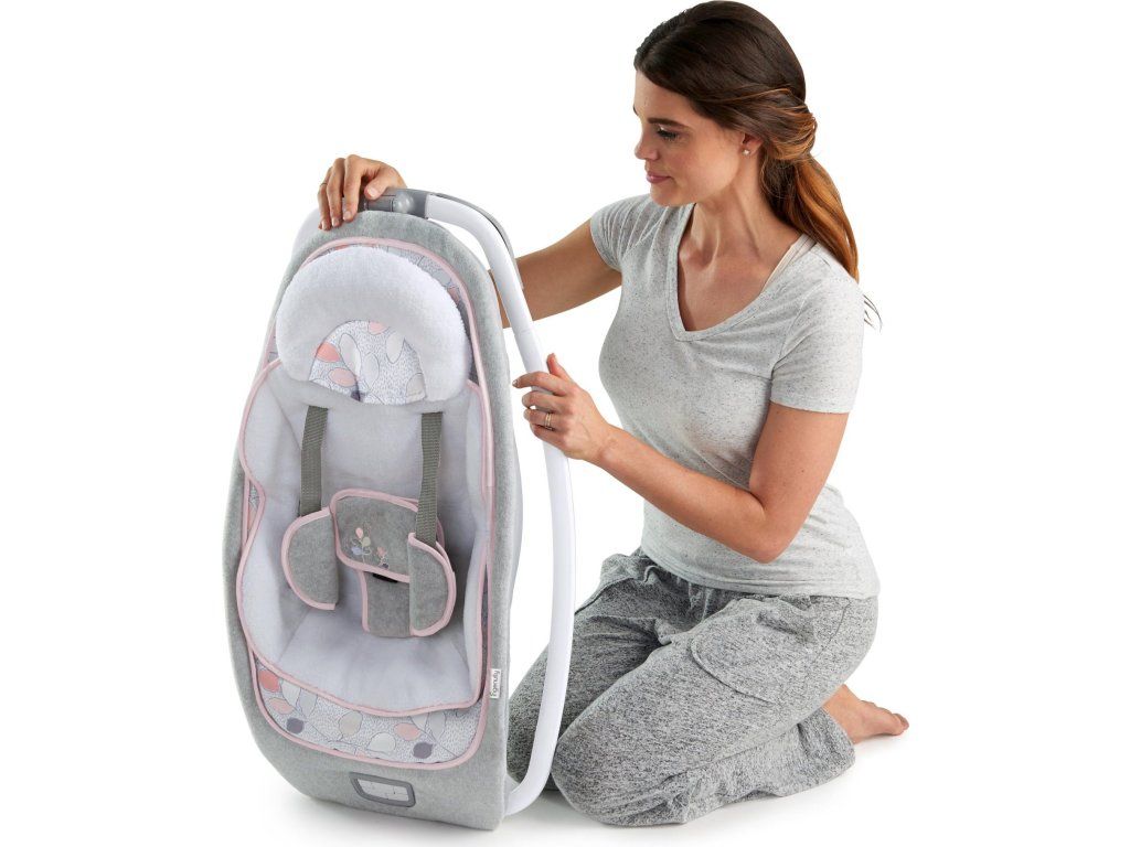 Nejelegantnější a nejmodernější dětské houpátko jaké jen může být! Moderní houpátko značky Ingenuity s jedinečnou možností sklápění do tří odlišných pozic pro zajištění největšího pohodlí miminka. Snad nejlepší částí tohoto úžasného houpátka je skvělý vzhled a prémiové, jemné tkaniny a textilie. Toto houpátko lze velmi jednoduše zafixovat a udělat z něj stacionární křesílko s uklidňujícím vibracemi, zvuky přírody a hudbou. Po odstranění kolotoče s hračkami se z něj stává šikovné houpací křesílko, které bude vaše malá princezna milovat. Pozoruhodně měkké tkaniny hýčkají děťátko v luxusní měkkosti s novorozeneckou vložkou a podhlavníčkem, které nabízejí zvláštní podporu pro menší děti a dají se jednoduše odstranit, jak dítě roste. Dokonce i bezpečnostní pás je zabalen v jemných flísových tkaninách, které chrání citlivou pokožku děťátka. Tato moderní platforma je navržena tak, aby se dala složit téměř úplně na plocho, takže skladování a přeprava budou hračkou. Zamilujete si jak bude úžasně doplňovat vzhled vašeho domova a váš malý poklad bude milovat tulení v takové nevšední měkkosti.