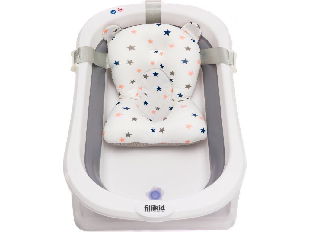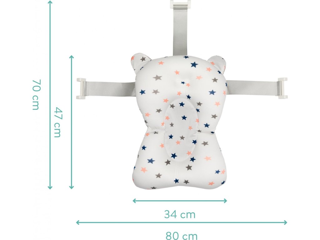Měkké lehátko do vany bylo speciálně navrženo tak, aby poskytlo vašemu miminku maximální pohodlí a bezpečí při koupání. Jemně obepíná tělo novorozence a zároveň optimálně podpírá hlavičku, krk i záda. Integrovaný klín pod hlavičkou ji lehce nadzvedne, takže se voda nedostane do úst, nosu, očí ani uší.