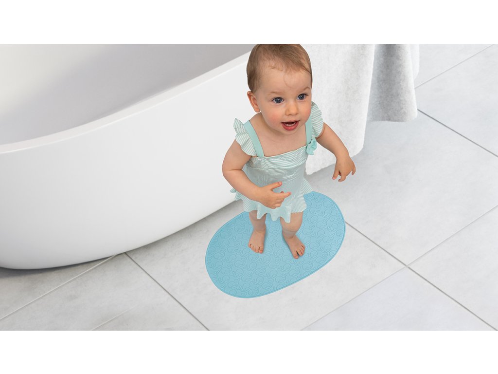 Podložka je vyrobena z přírodního materiálu podobnému gumě. Díky přirozené protiskluznosti materiálu poskytuje koupelnová podložka vašemu miláčkovi bezpečnou ochranu proti uklouznutí na hladkém povrchu. Svršek je navíc opatřen strukturou v roztomilém velrybím designu, která má navíc protiskluzový efekt.
