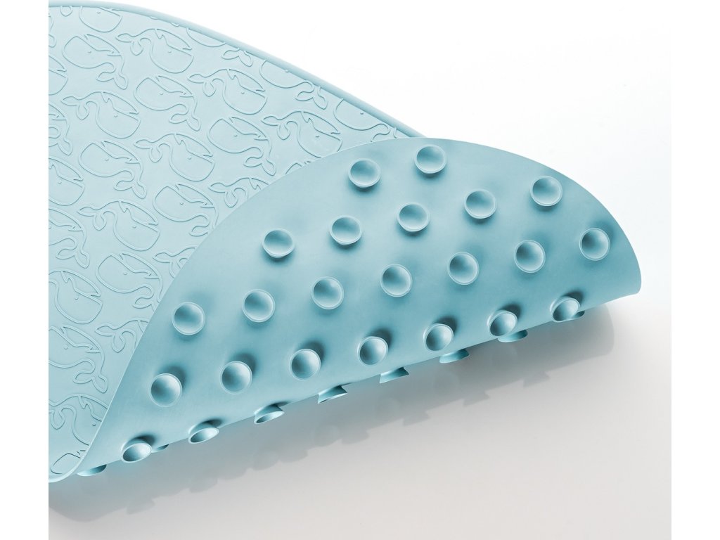 Podložka je vyrobena z přírodního materiálu podobnému gumě. Díky přirozené protiskluznosti materiálu poskytuje koupelnová podložka vašemu miláčkovi bezpečnou ochranu proti uklouznutí na hladkém povrchu. Svršek je navíc opatřen strukturou v roztomilém velrybím designu, která má navíc protiskluzový efekt.