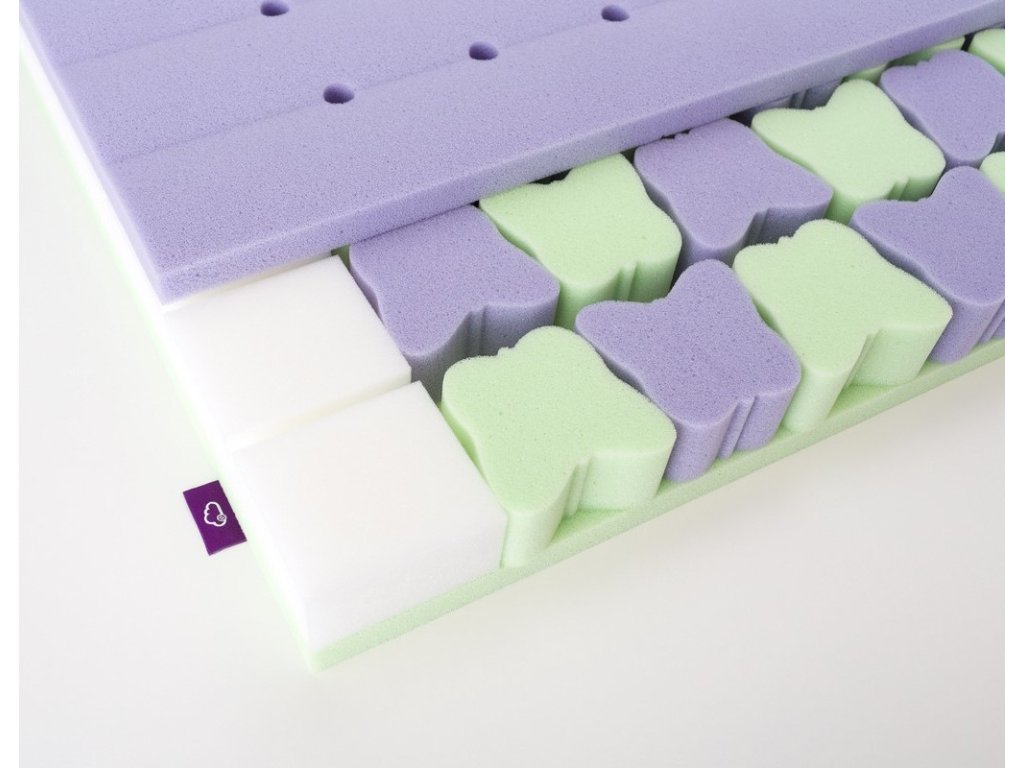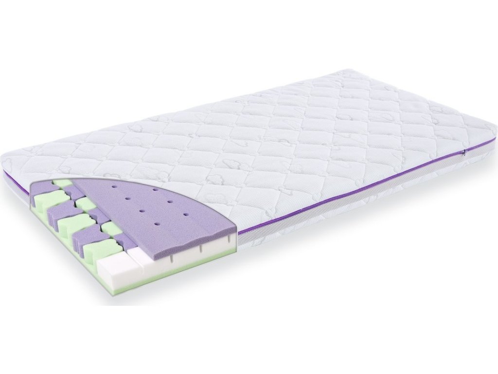 Matrace Butterfly 60 x 120 cm Jádro flexibilní samostatné 3D komfortní polštářky z pěny vyráběné za studena svislé vzduchové kanálky pro optimální cirkulaci vzduchu kojenecká a dětská strana bodová elasticita pro optimální polohu dítěte při spánku okraj pro bezpečný nášlap Potah funkční potah Sleep Safety integrovaná ochrana proti promáčení prodyšnost dělitelný vhodný pro alergiky materiál: Tencel (38% Tencel, 28% polyester, 34% polyamid) obohacen o přírodní esence z levandulového a meduňkového oleje lze prát při 60 °C a sušit v sušičce