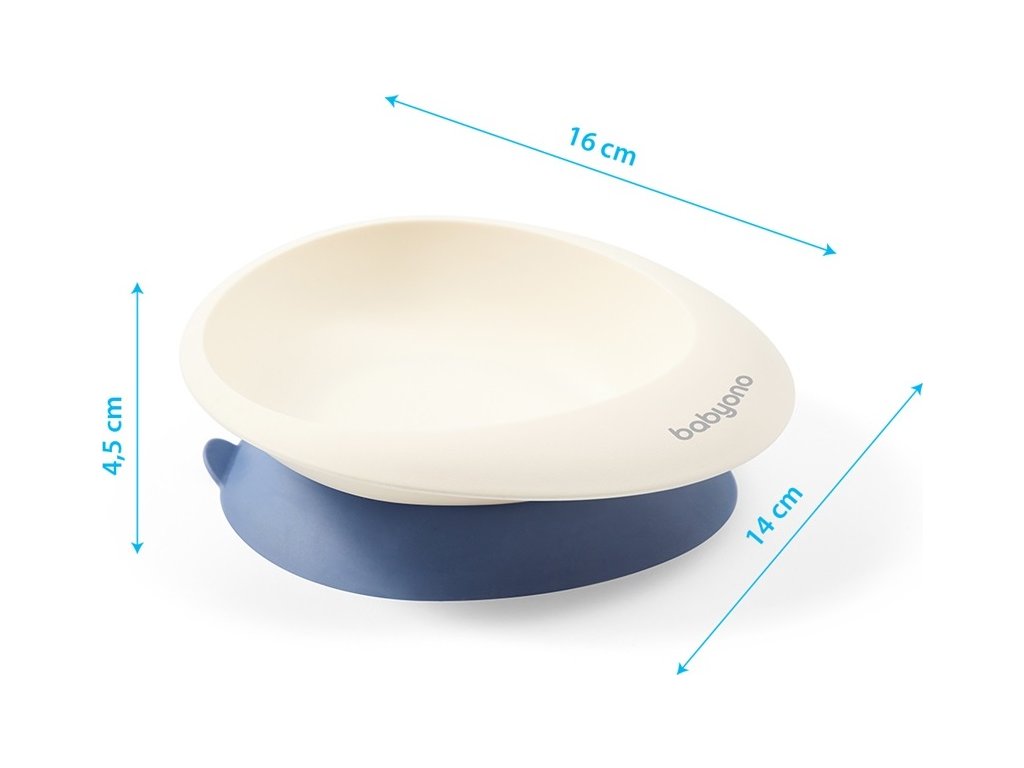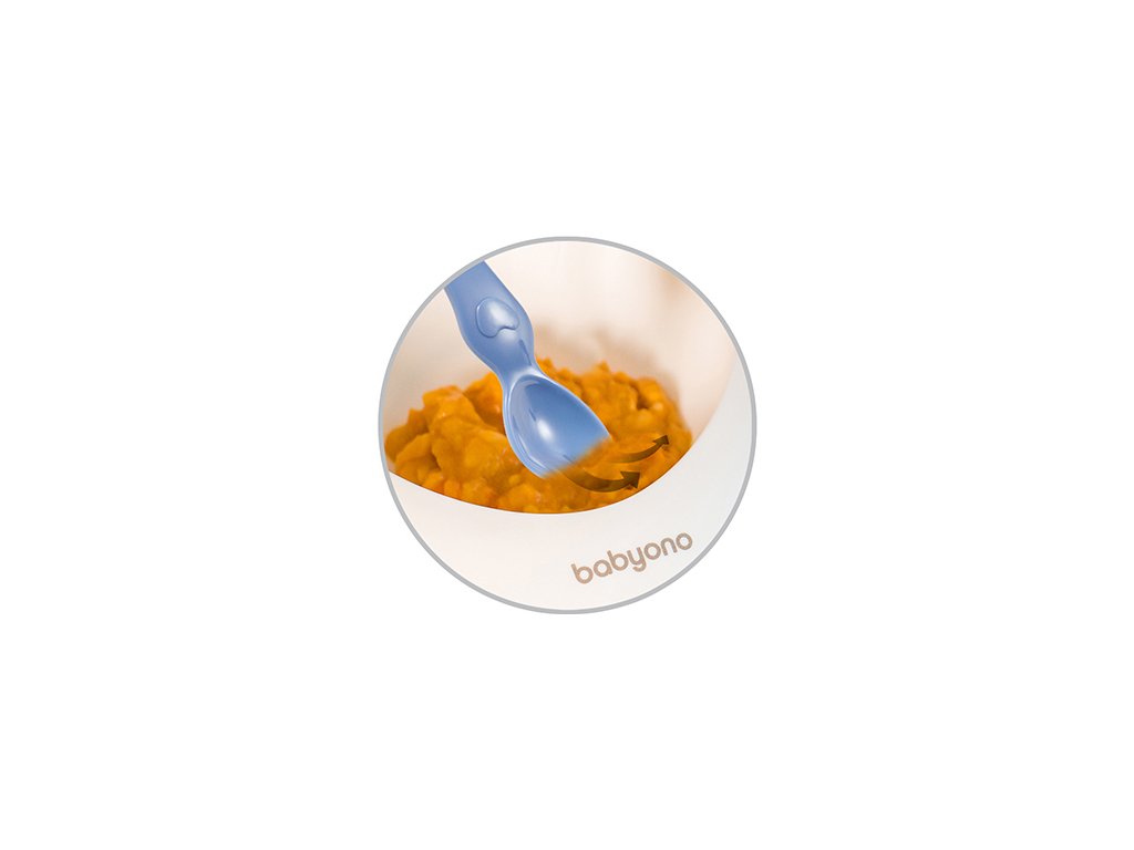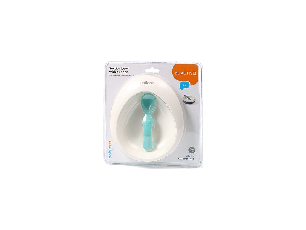 Dvoudílný set k jídlu z měkkého plastu bez BPA je velmi praktický, snadno uchopitelný a protiskluzový. Set obsahuje misku s přísavkou a lžičku. Oválný tvar misky usnadňuje nabírání jídla, zatímco přísavka na misce zabraňuje jejímu pohybu po stole a tím rozlití jídla a pomáhá udržovat věci čisté.