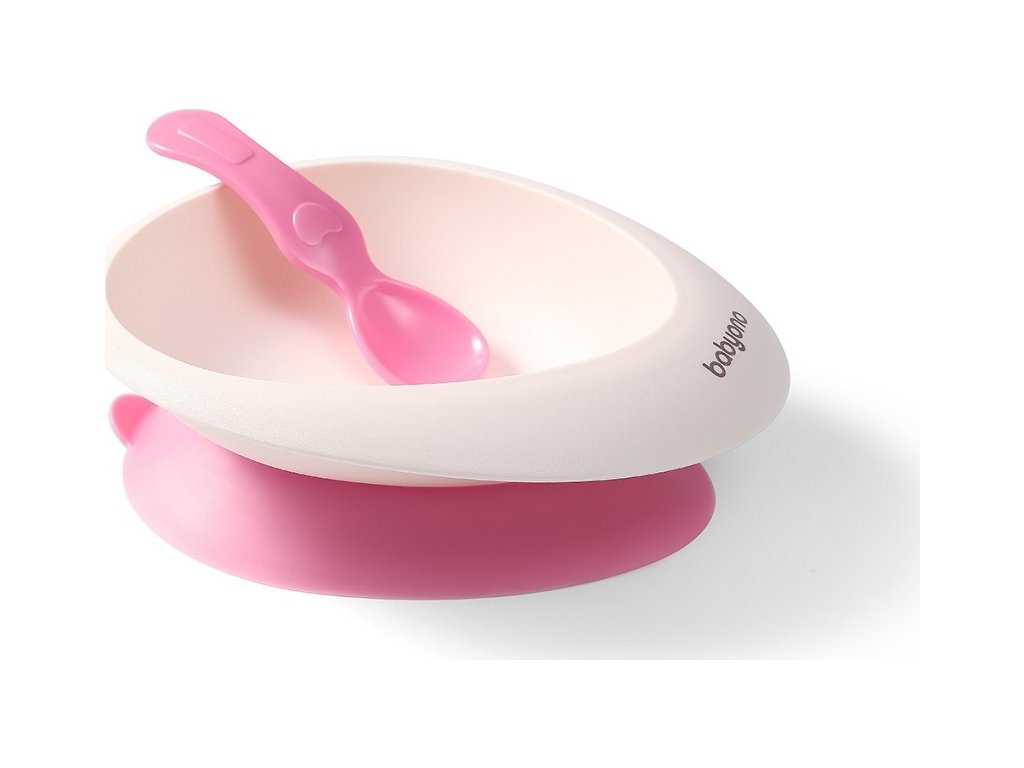 BABYONO BABYONO Miska s přísavkou a lžičkou růžová 230 ml 6m+