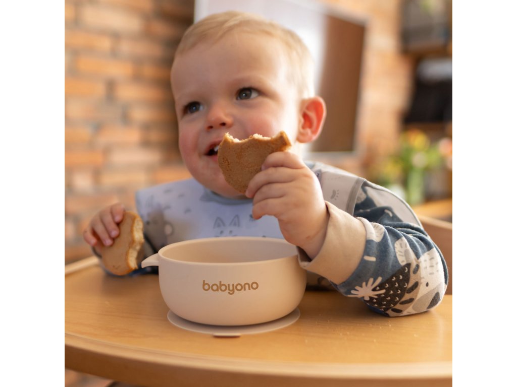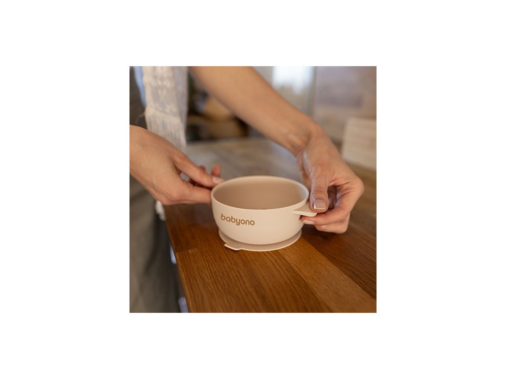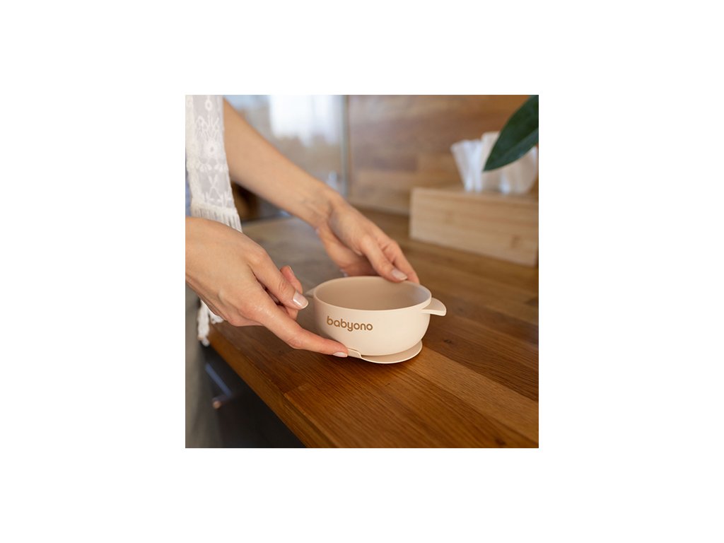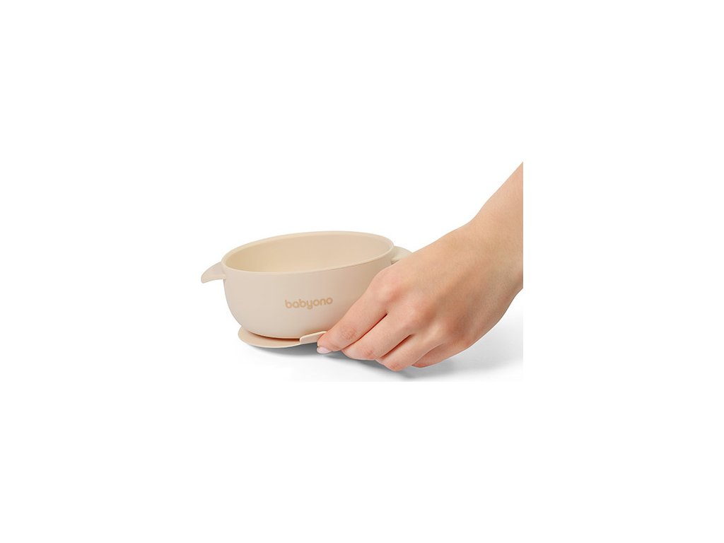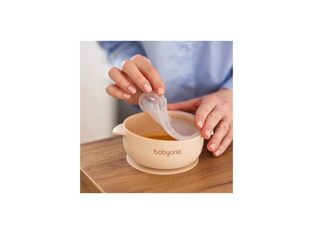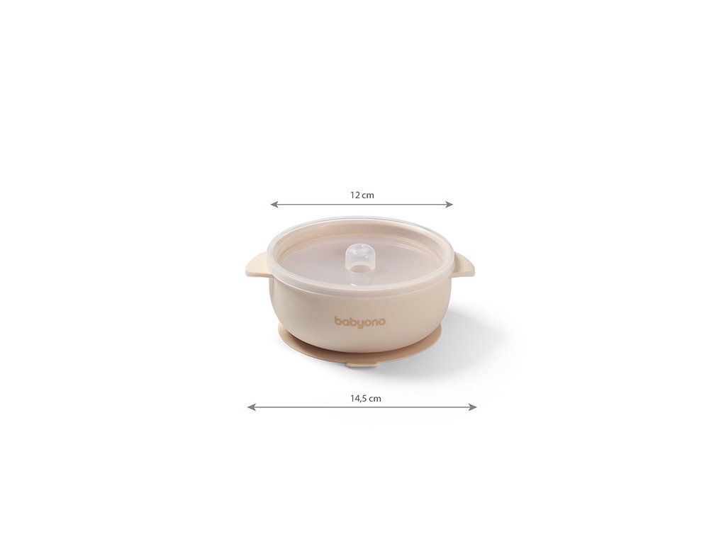 BABYONO BABYONO Miska silikonová s přísavkou a víčkem béžová 6m+