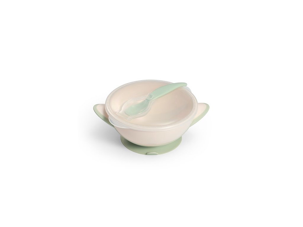 BABYONO BABYONO Miska uzavíratelná s přísavkou a lžičkou 300 ml světle zelená 6m+