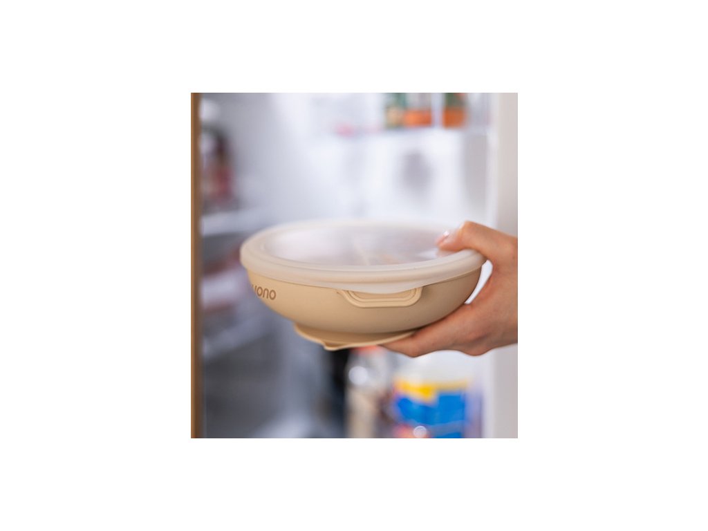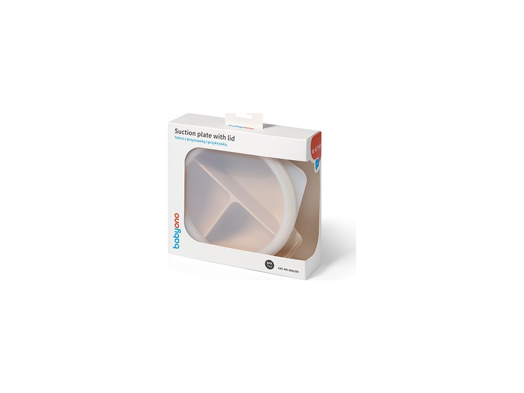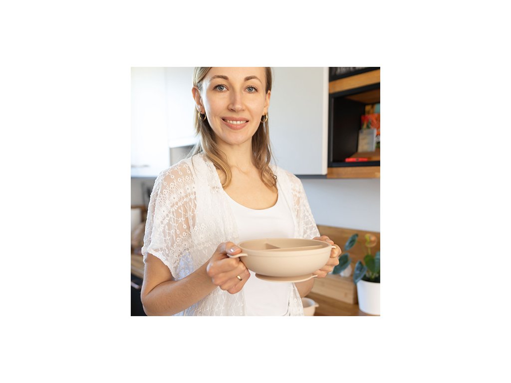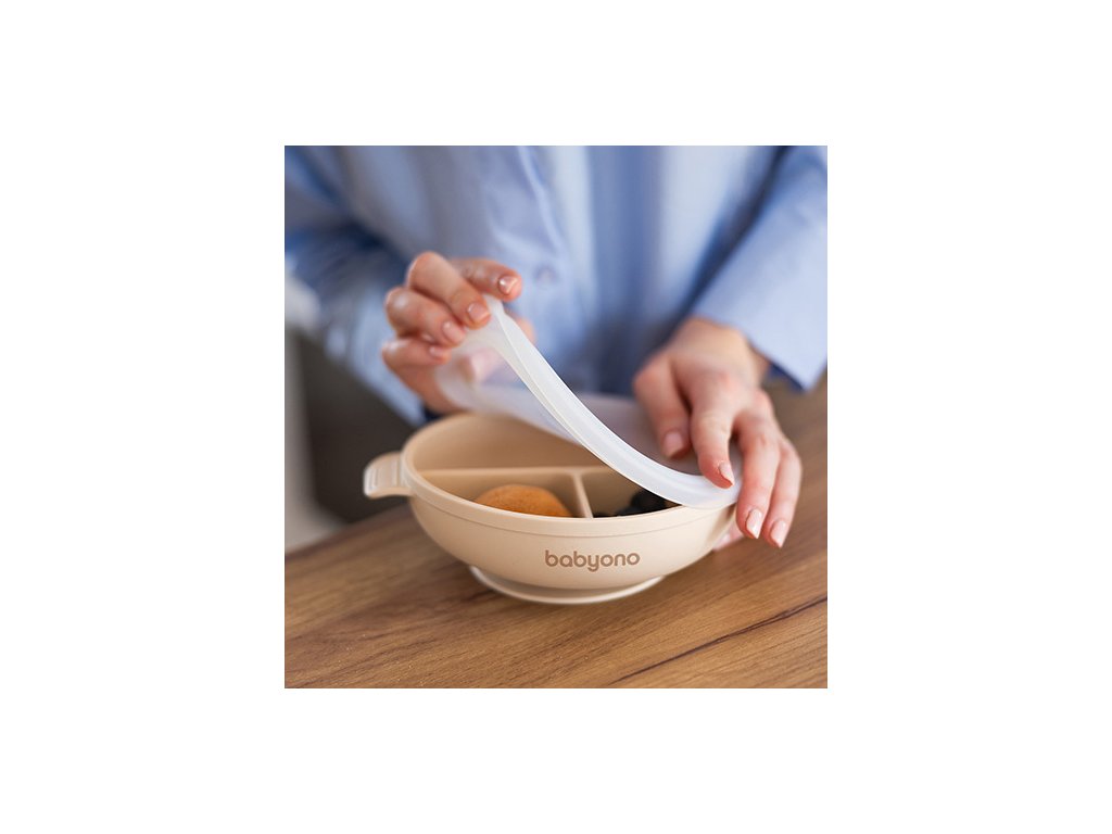 BABYONO BABYONO Talíř silikonový s přísavkou a víčkem béžový 6m+