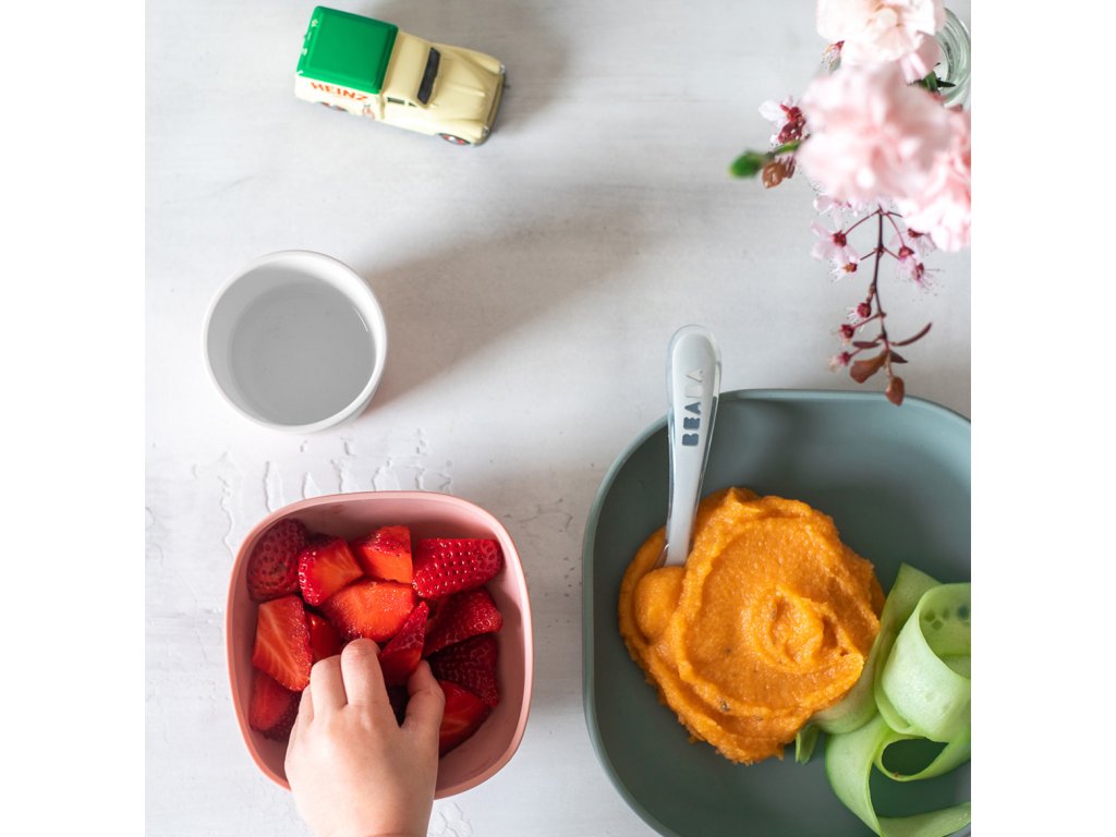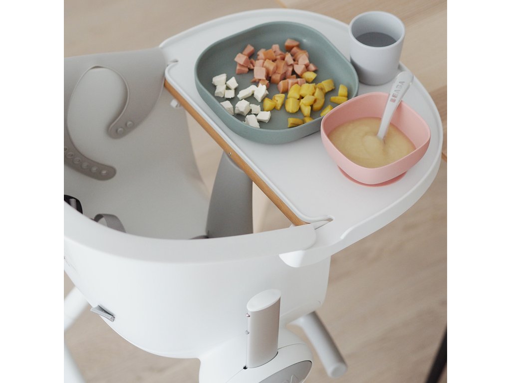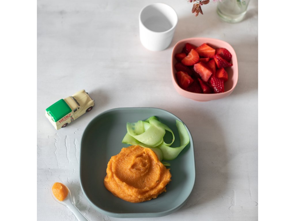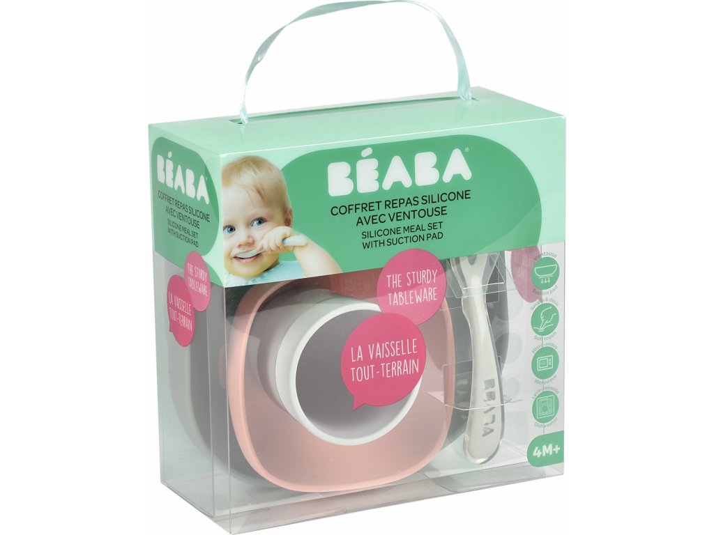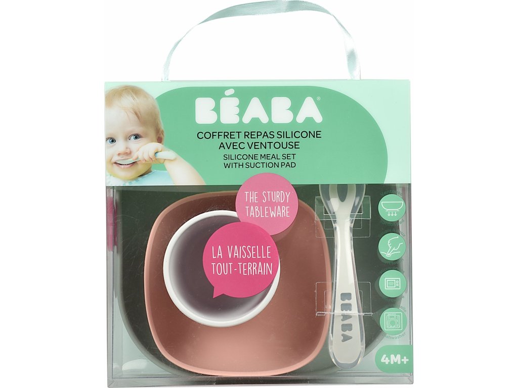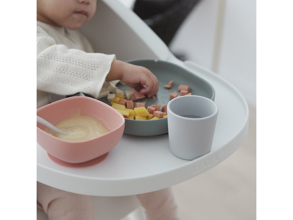 Sada talíře, misky, kelímku na pití a lžičky z vysoce kvalitního silikonu je ideální pro první samostatné krmení. Přísavka u misky a talíře umožňuje uchycení ke stolu nebo pultu jídelní židličky. Ergonomický tvar usnadňuje nabírání příkrmu.