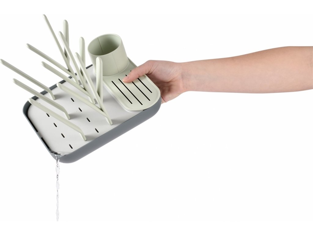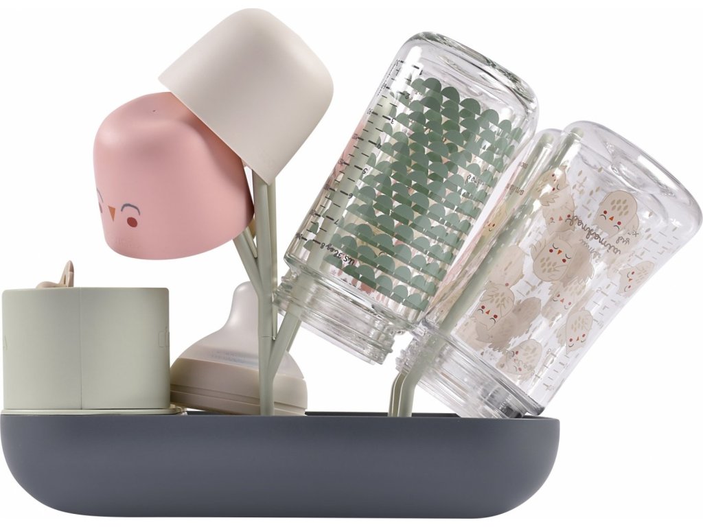 Stojan má kapacitu až 6 kojeneckých lahví a jejich příslušenství. Variabilní uspořádání umožňuje jeho použití pro jakékoli dětské nádobí.