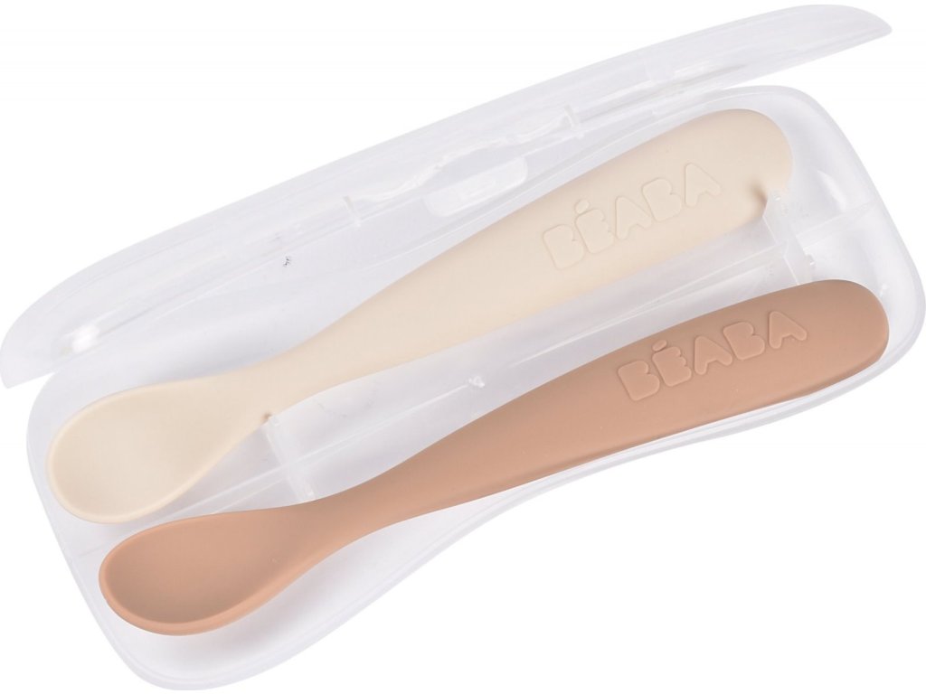 Silikonové lžičky Beaba pro nejmenší jsou šetrné k citlivým dětským dásním a navržené pro hladký přechod ze savičky na lžičku. Dlouhá rukojeť usnadňuje rodiči nabírání z misky i skleničky bez zašpinění rukou. Praktické pouzdro umožňuje hygienické přenášení lžiček např. v přebalovací tašce.