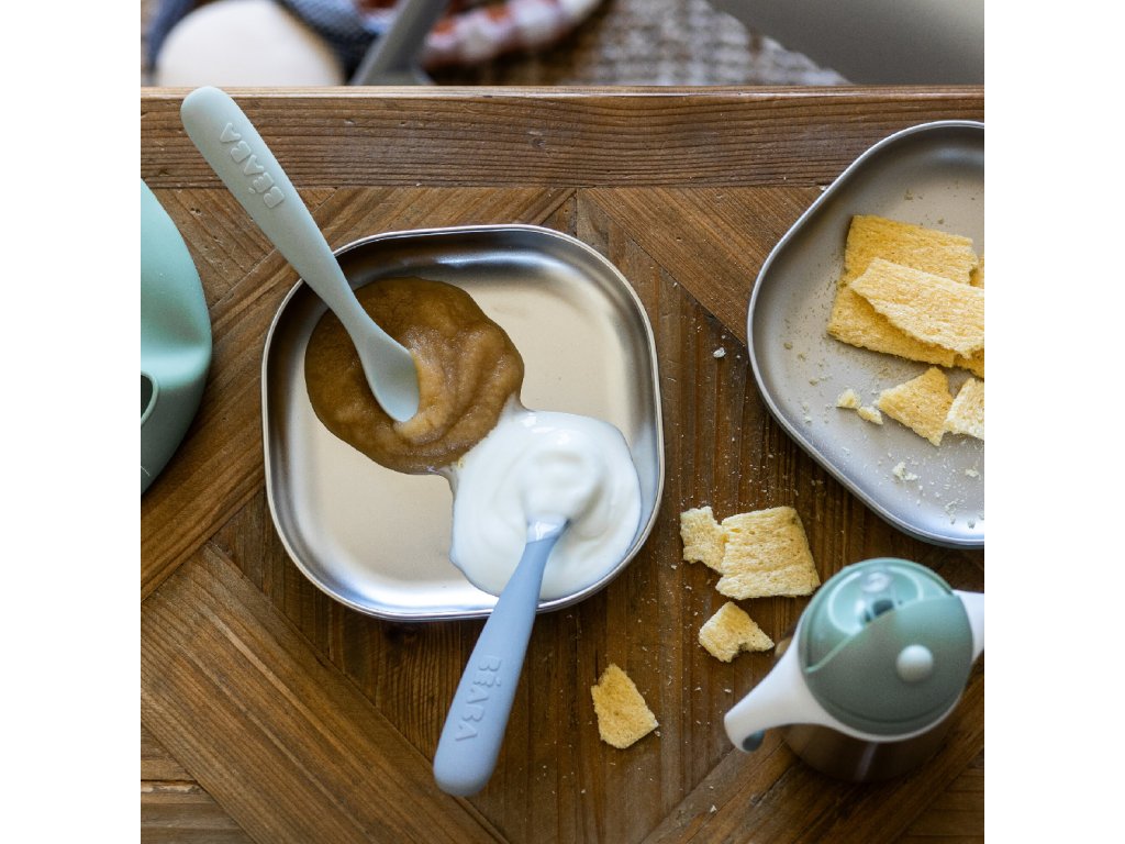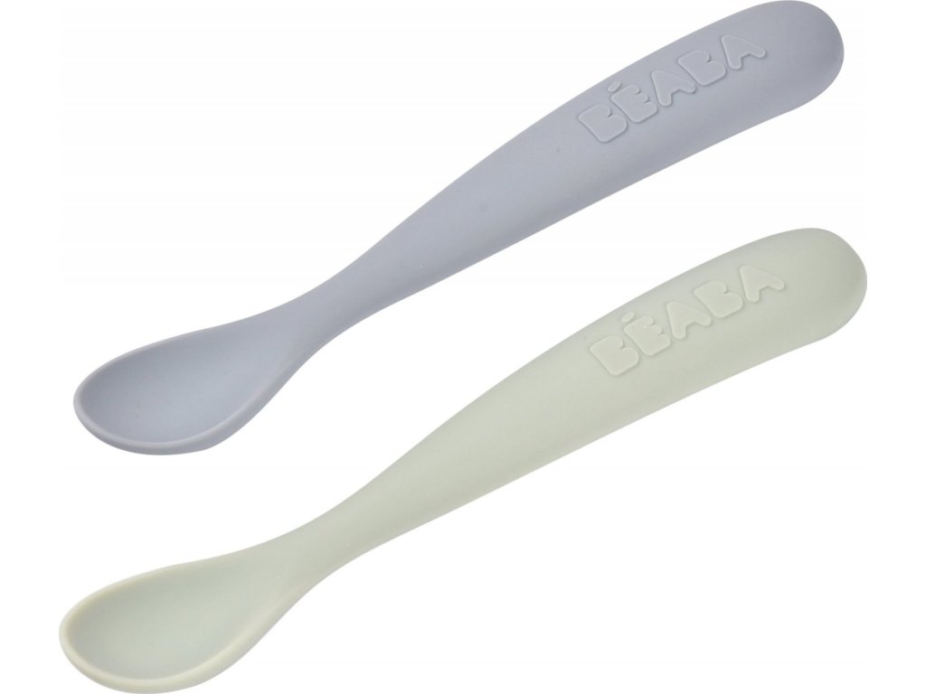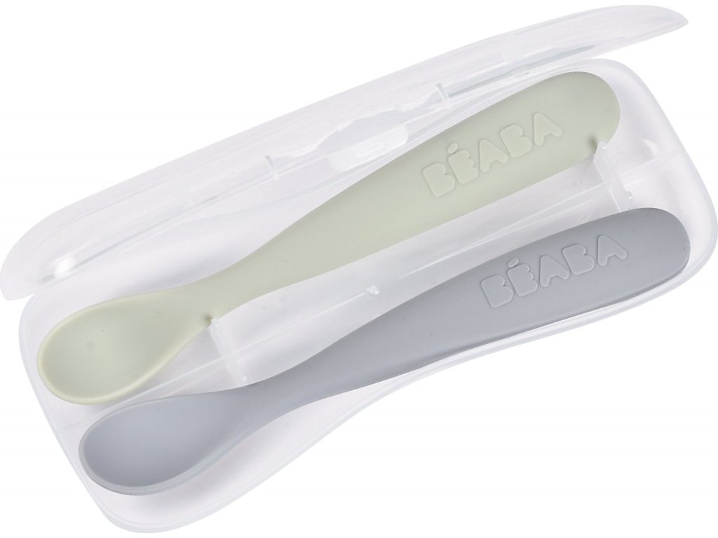 Beaba První lžičky silikonové 2 ks s pouzdrem Pebble Green