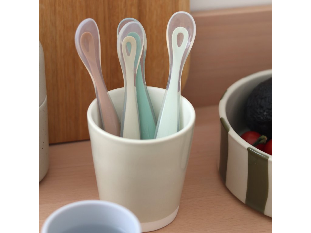 Silikonové lžičky pro nejmenší jsou šetrné k citlivým dětským dásním a navržené pro hladký přechod ze savičky na lžičku. Dlouhá rukojeť usnadňuje rodiči nabírání z misky i skleničky bez zašpinění rukou.