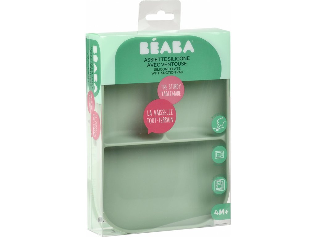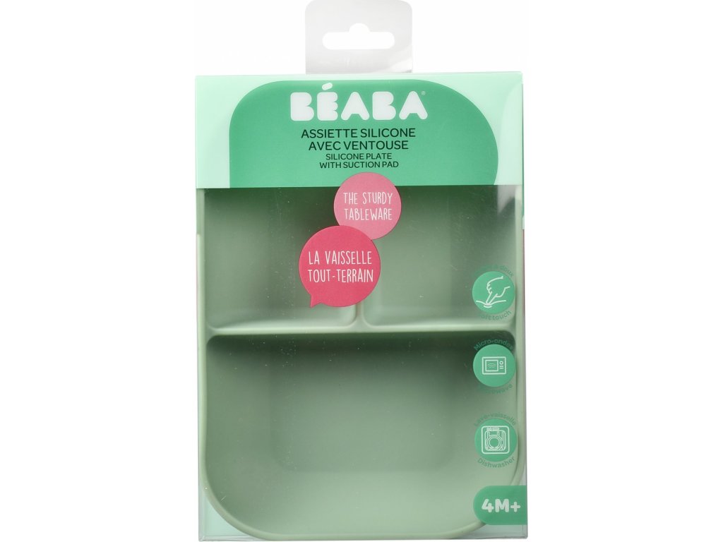 Beaba Talíř silikonový dělený s přísavkou Sage Green