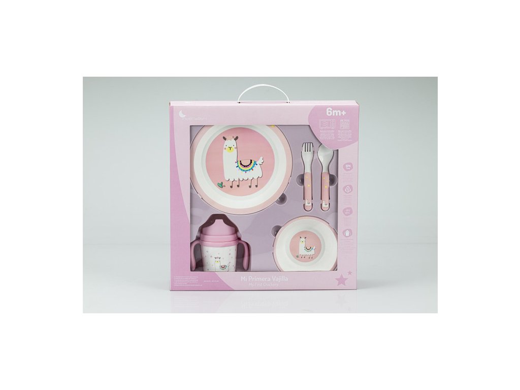 INTERBABY | Jídelní set LAMA +6M - růžový