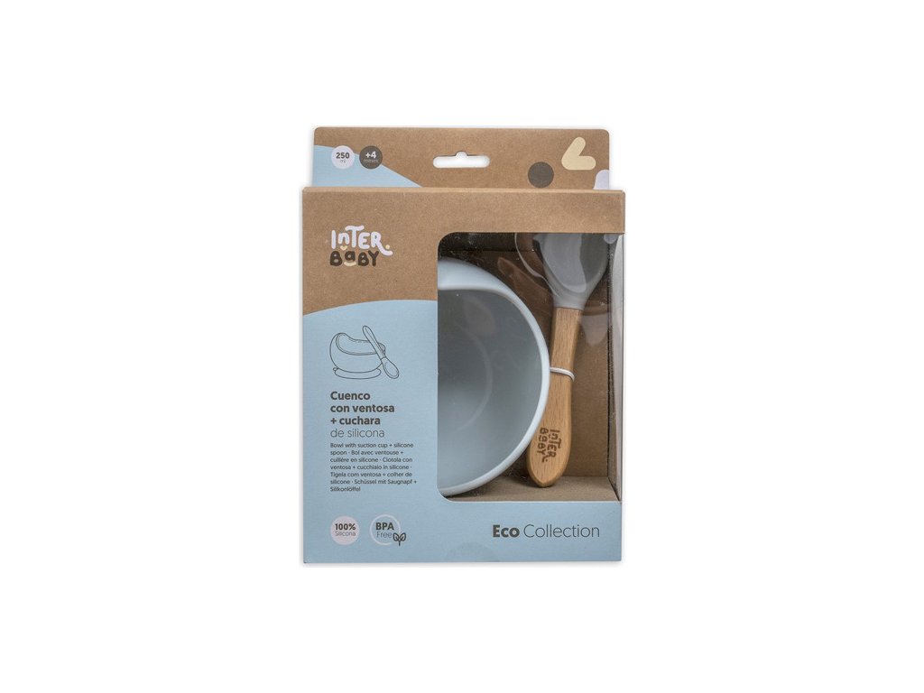 INTERBABY | MISKA silikonová + LŽIČKA silikonová +4 m - modrá