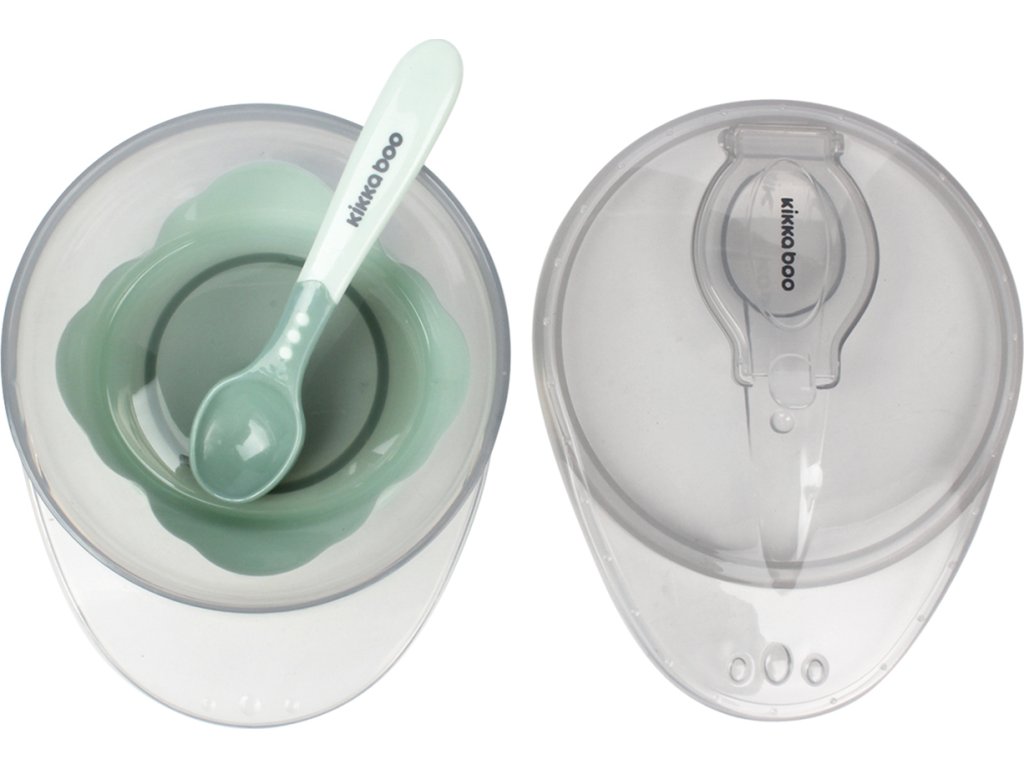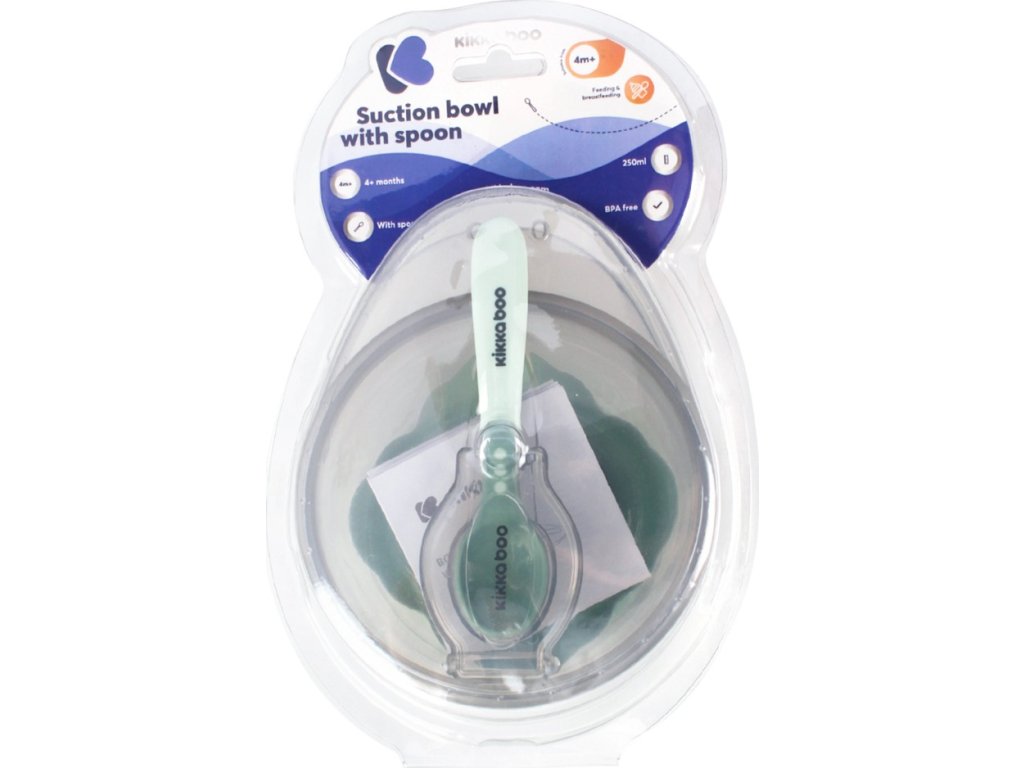 Dětská miska KikkaBoo obsahuje misku s přísavkou, lžičku a víčko. Díky přísavce miska neklouže po stole či jídelním pultu. Víčko se snadno otevírá a umožňuje praktické uložení lžičky.