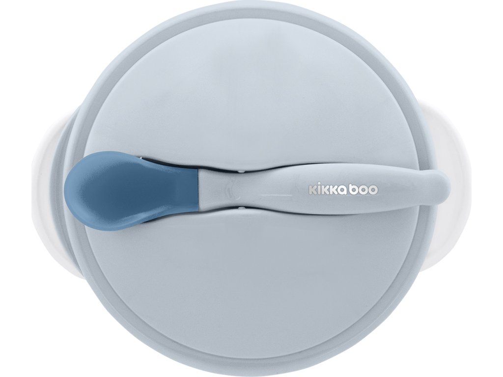 Dětská miska KikkaBoo obsahuje misku s přísavkou, lžičku s tepelným senzorem a víčko. Díky přísavce miska neklouže po stole či jídelním pultu. Lžička s tepelným senzorem změní barvu, pokud je teplota příkrmu příliš vysoká. Víčko se snadno otevírá a umožňuje praktické uložení lžičky.