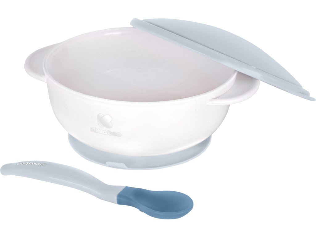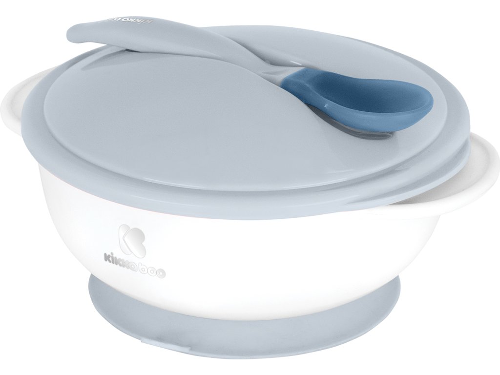 KikkaBoo Miska s přísavkou, víčkem a lžičkou s tepelným senzorem Blue