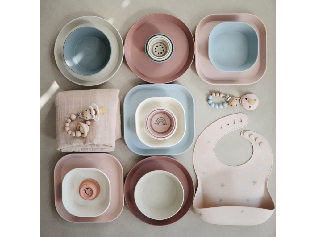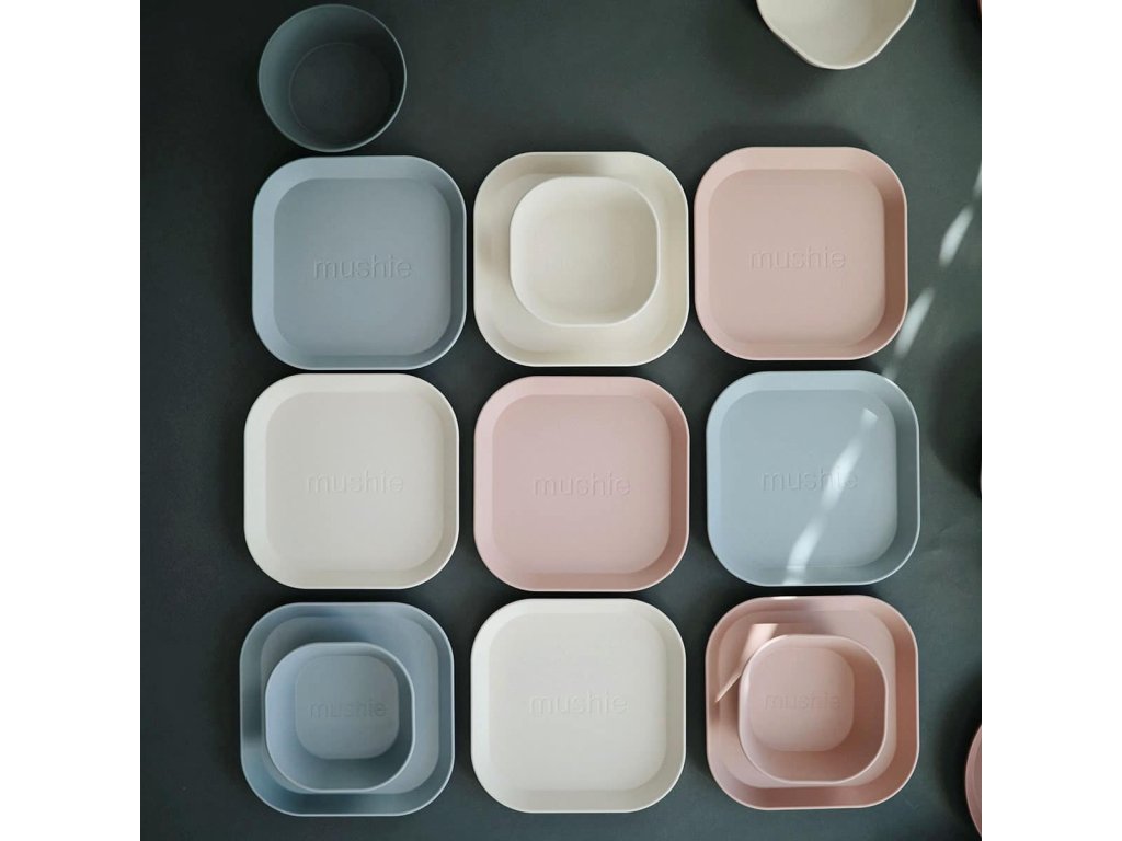 Mushie dětský nádobí je tak vkusný a originální, až máte chuť mít jeden set jen pro sebe J Díky jeho tvaru je snadno uchopitelný i pro děti. Hranaté talířky krásně doplňují další barevně sladěné Mushie sety dětského nádobí a doplňků. Vaše stolování s dětmi bude jednoduše stylové a originální.