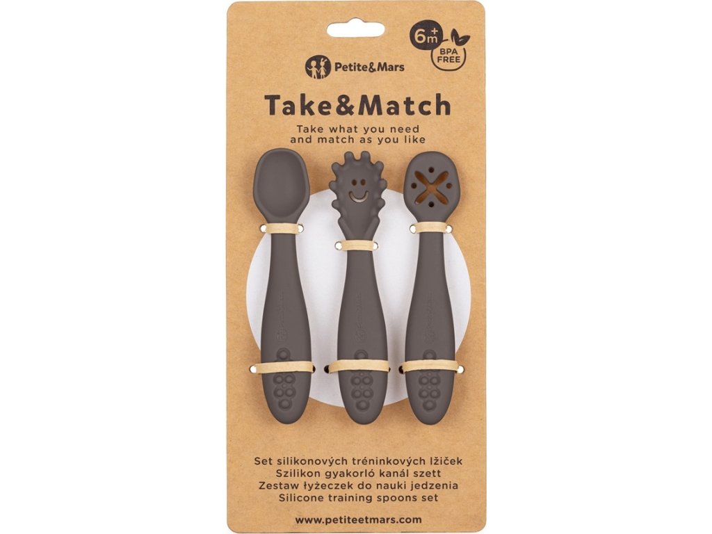 PETITEMARS PETITE&MARS Set 3 ks silikonových tréninkových lžiček Take&Match Bitter Cocoa 6m+