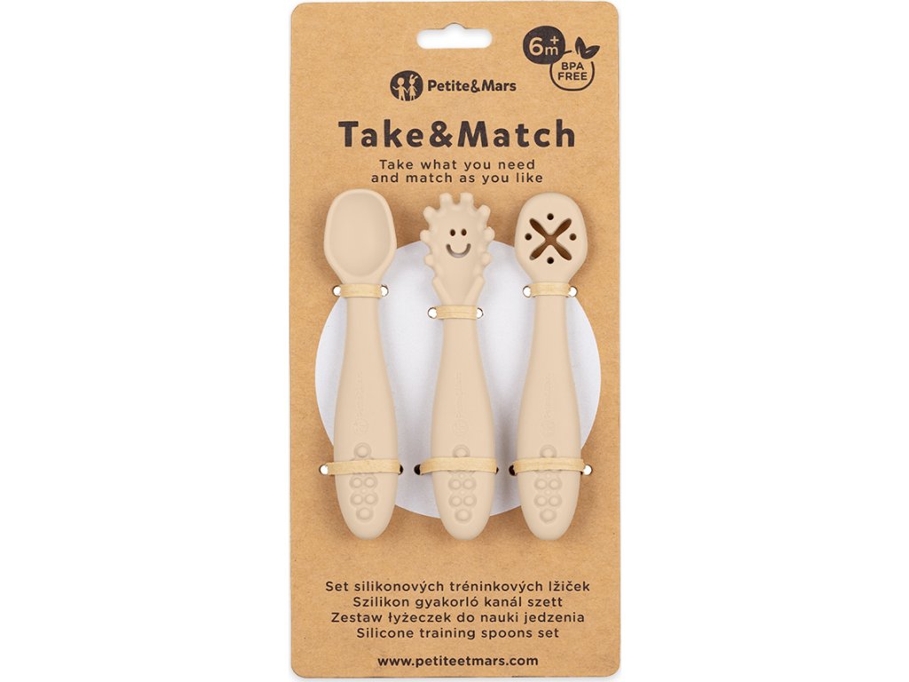 PETITEMARS PETITE&MARS Set 3 ks silikonových tréninkových lžiček Take&Match Desert Sand 6m+