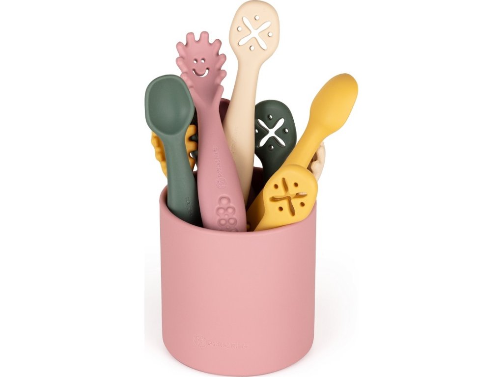 Set je vyroben z potravinářského silikonu bez obsahu BPA. Díky tomu může vaše dítě s příborem jíst teplé, studené a různé konzistence jídel. Díky pružnému silikonu jsou lžičky ideální pro citlivé dásně malého dítěte. Lžičky jsou vhodné pro děti od 6 měsíců, které se seznamují s prvními příkrmy, a pro ty, které se již úspěšně učí jíst samy. Zaoblené tvary a malé rozměry usnadňují děťátku jejich uchopení a papání.