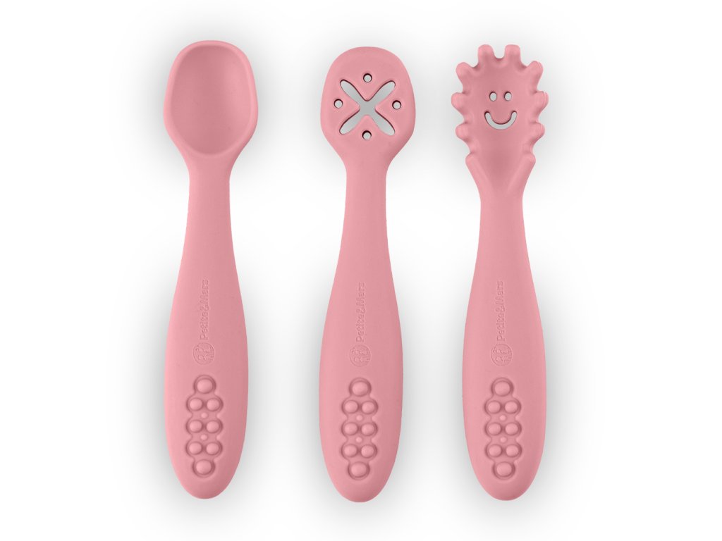 PETITEMARS PETITE&MARS Set 3 ks silikonových tréninkových lžiček Take&Match Dusty Rose 6m+