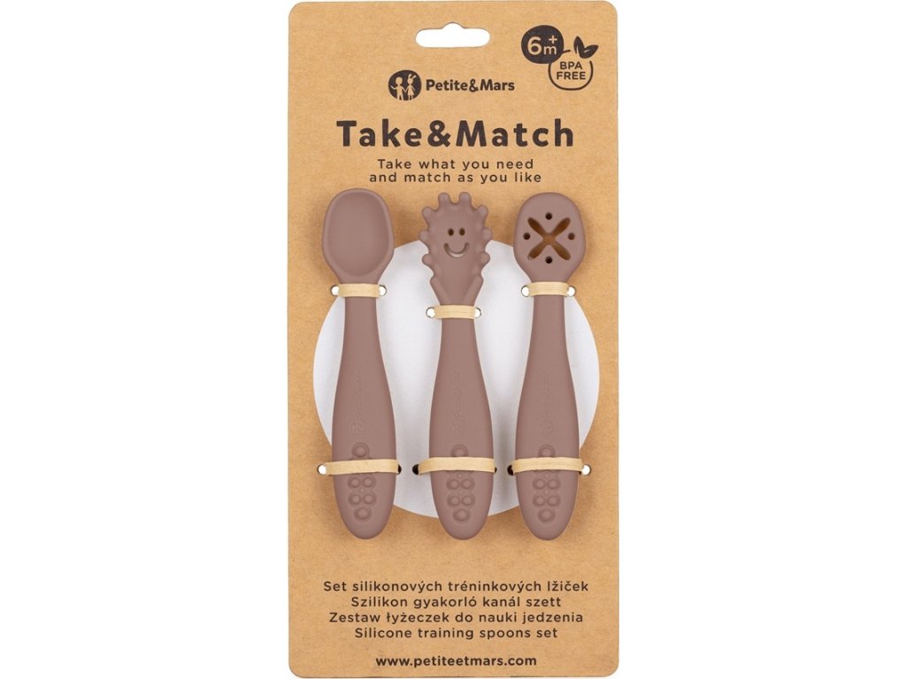 PETITEMARS PETITE&MARS Set 3 ks silikonových tréninkových lžiček Take&Match Velvet Latte 6m+