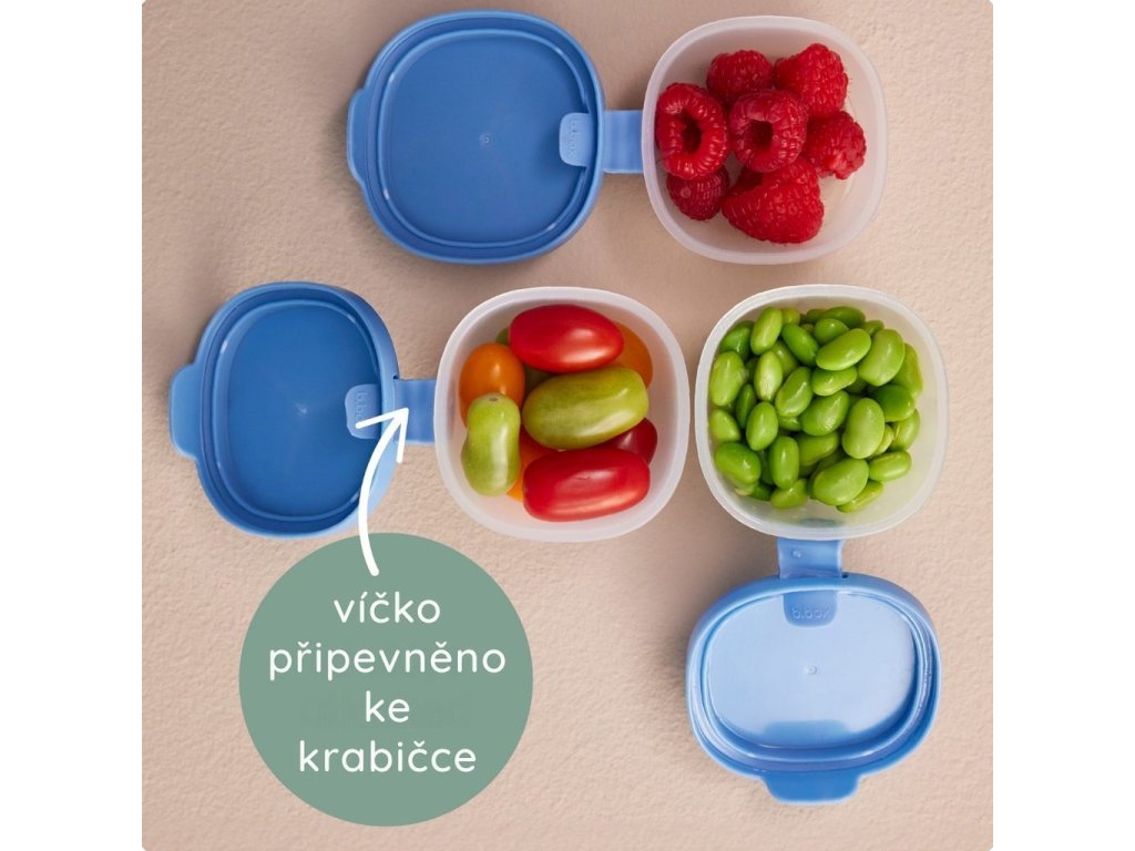 Tyto mini krabičky na svačiny budou ideální doplněk nejen svačinových boxů b.box, ale také pro samostatné použití. Silikonové těsnění udrží oblíbené svačinky vašich dětí déle čerstvé! Pro zajištění dokonalé těsnosti je důležité krabičky řádně uzavřít – ujistěte se, že máte správně nasazené těsnění (nápis b.box vždy na vnější straně) a při zavření uslyšíte charakteristické "cvaknutí".