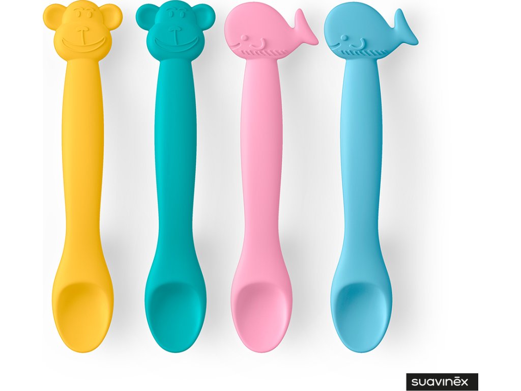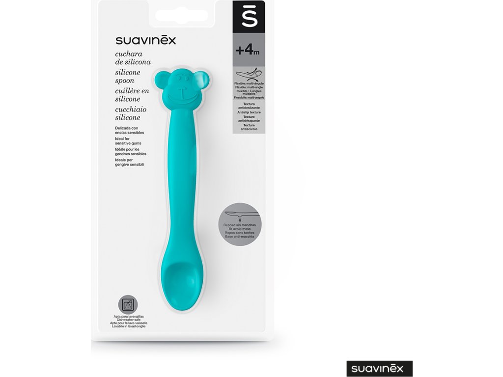 SUAVINEX | Silikonová lžička OPIČKA - ZELENÁ