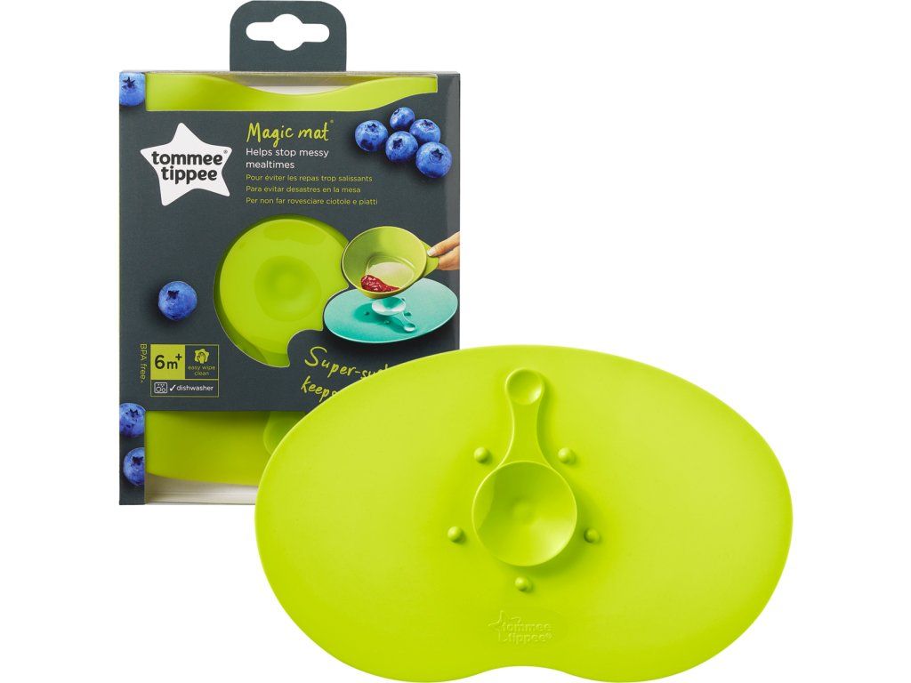 Podložka na stůl Tommee Tippee Explora přilne ke každému stolu nebo pultu dětské jídelní židličky. Díky přísavce uprostřed podložky bezpečně drží na místě dětské misky a talíře a zabraňuje vylévání a klouzání. Ideální pro dítě, které se učí samostatnému krmení.