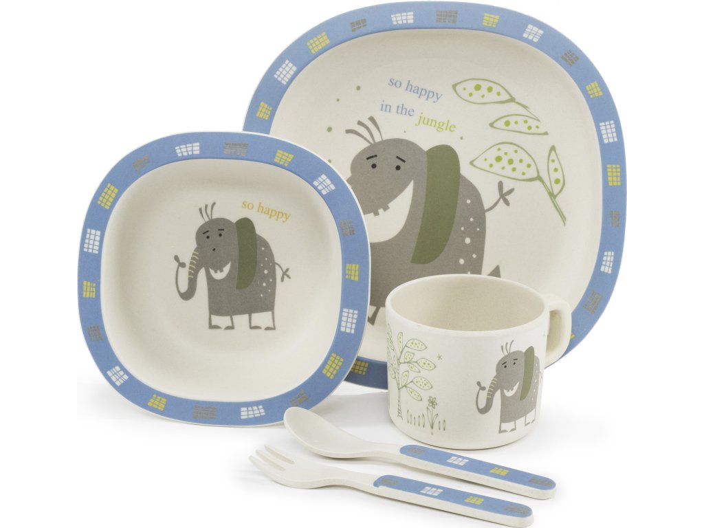 Bambusová sada nádobí s veselým designem určená pro děti. Nádobí je vyrobeno z bambusového vlákna, což znamená že je velmi šetrné k přírodě, biologicky rozložitelné a ekologicky nezávadné.