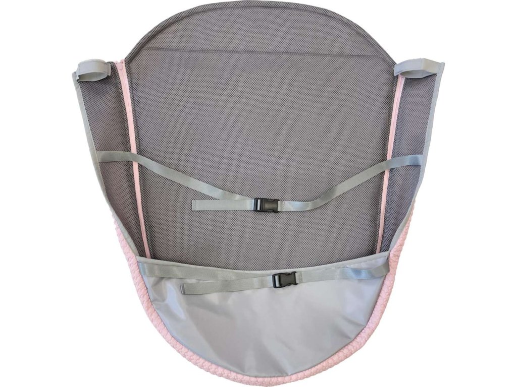 přichycení nánožníku ke kočárku je řešeno popruhy a poutky ve třech úrovních, do kočárku tak nefouká