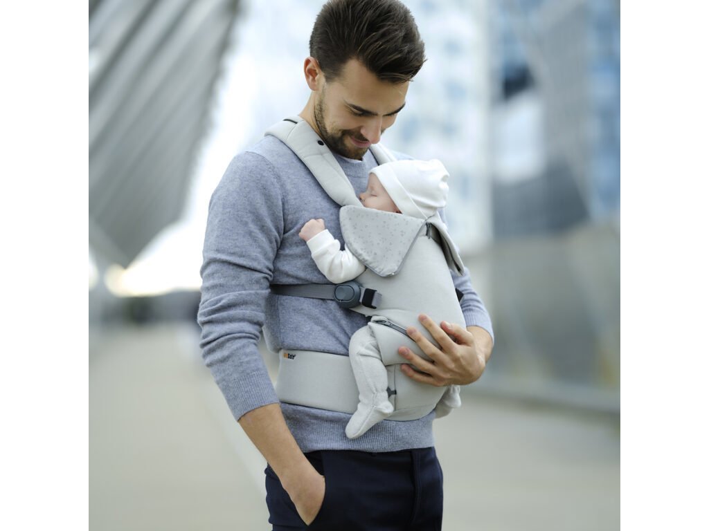 - unikátní a patentovaný ergonomický Airgonomics™ vzduchový podpůrný polštářek pro miminko vyrovnávající a rozkládající váhu dítěte při vnějším nošení