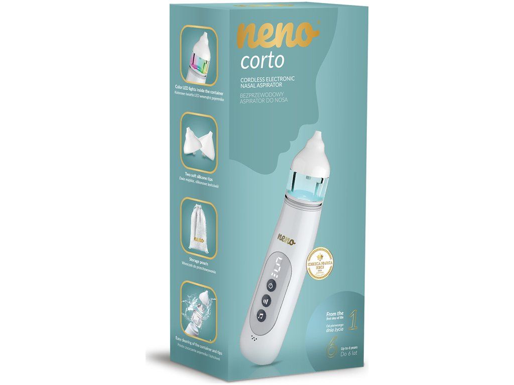 Od prvního dne života: Nosní aspirátor Neno Corto byl navržen s ohledem na nejmenší děti – lze jej použít k úlevě od rýmy u kojenců již od prvních dnů života. Jemně a účinně odstraňuje nosní hlen a pomáhá udržovat správnou dýchací hygienu. Je obzvláště užitečný při rýmě, kdy i malé množství hlenu může bránit dýchání, krmení nebo klidnému spánku, a to zejména u kojenců, kteří dýchají primárně nosem.
