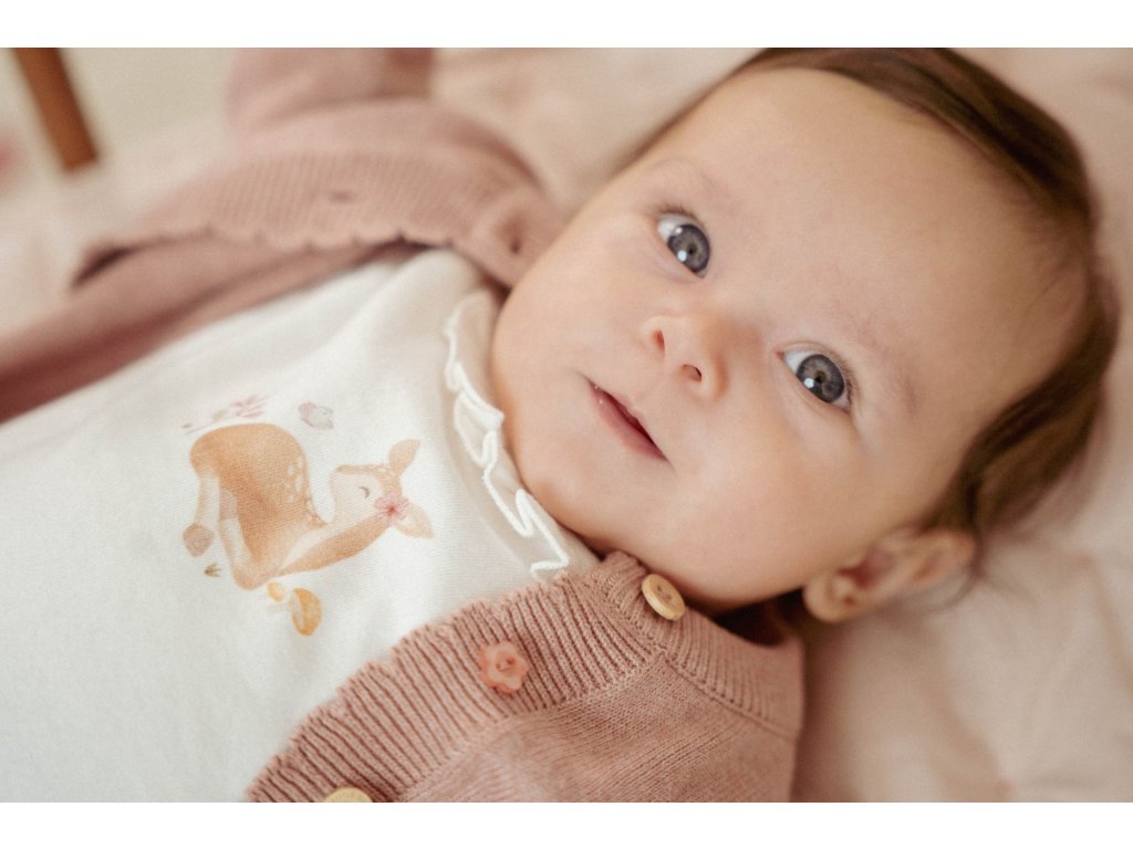 Stylový dětský kardigan z měkké příjemné pleteniny z organické bavlny poskytne vašemu dítěti teplo a pohodlí. Kardigan se snadno obléká díky zapínání na knoflíky.